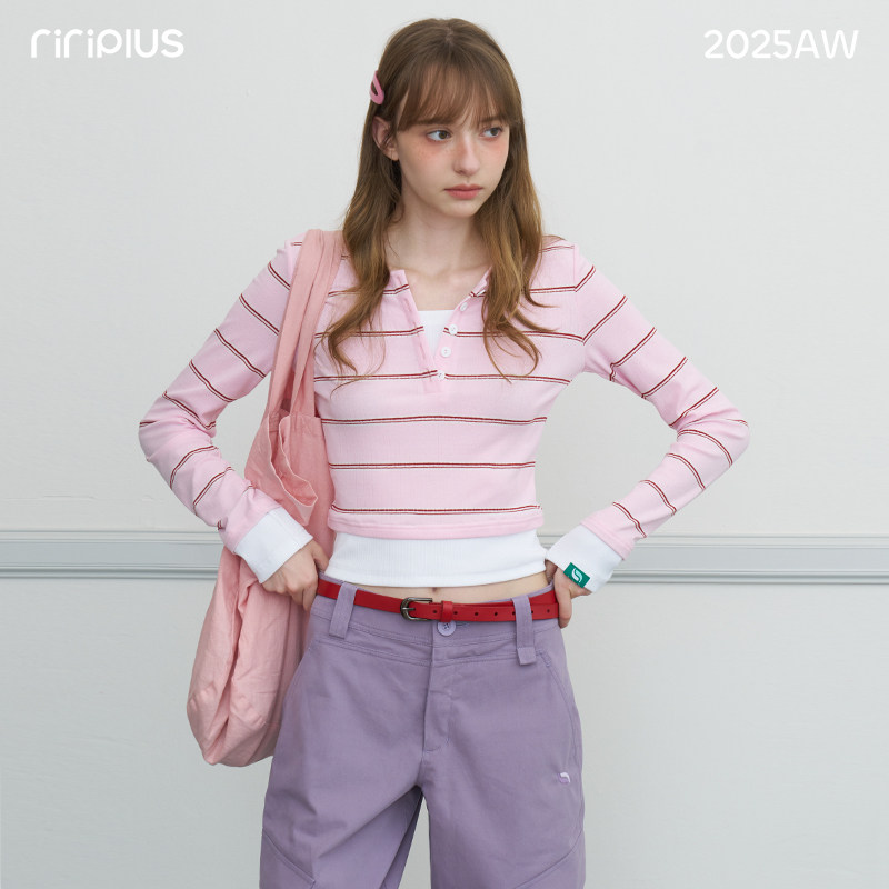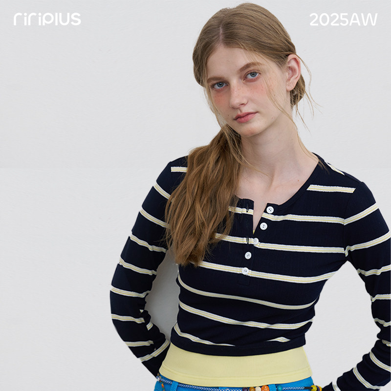📚 riverstone plus 天丝假两件条纹上衣春季修身正肩V领长袖T恤女