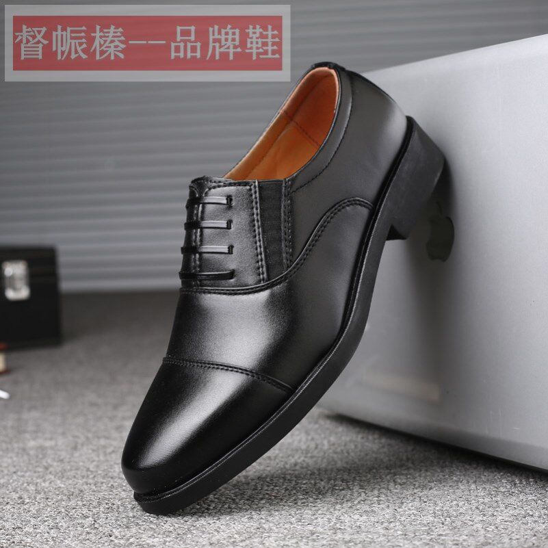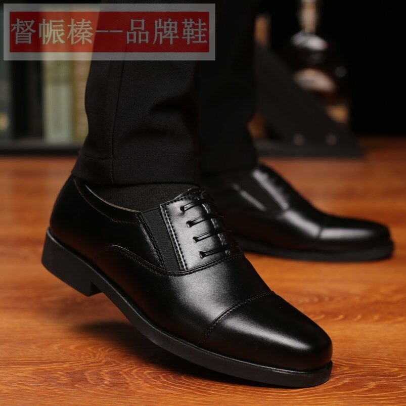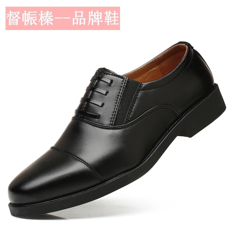 📚 春秋新款商务皮鞋男三接头正装上班保安面试休闲软底套脚棉鞋男鞋
