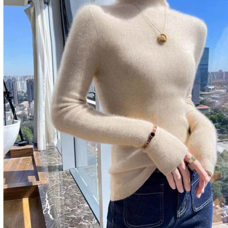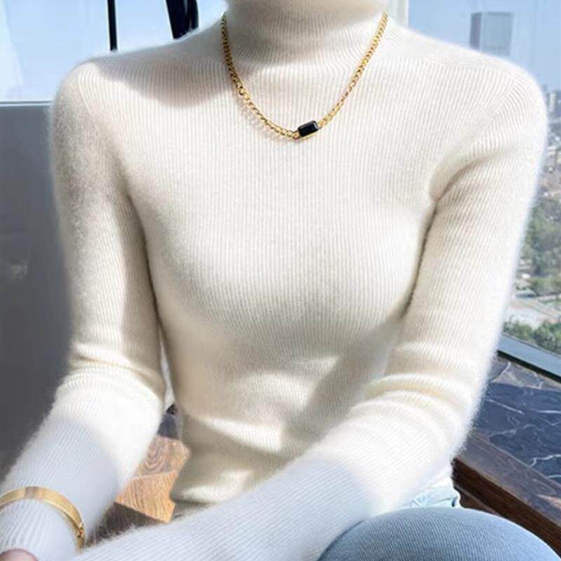 📚 白色高领羊毛打底衫女装秋季韩系修身内搭羊绒毛衣针织衫紧身上衣