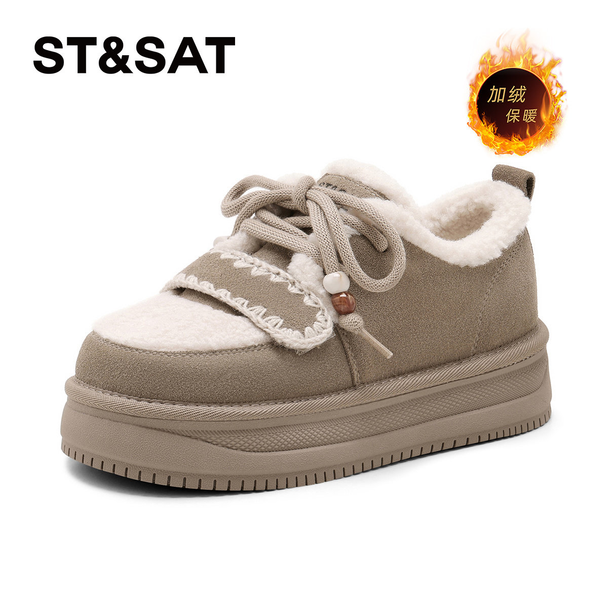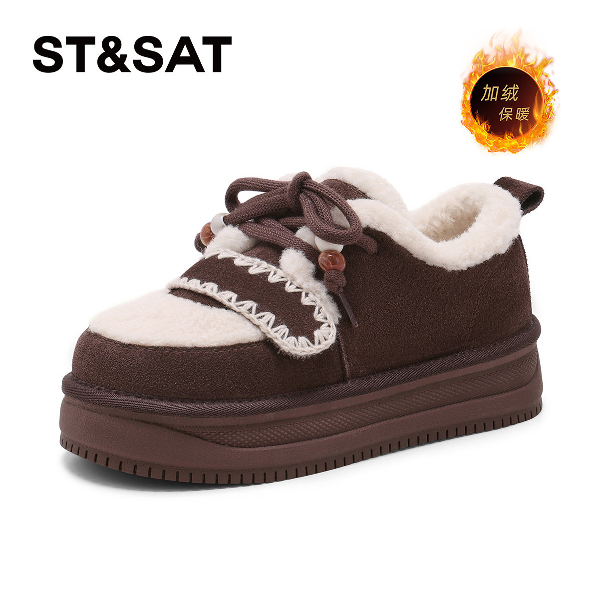 📚 St&Sat/星期六冬季牛反绒厚底勃肯鞋保暖毛绒里棉鞋女SSD4112CNZ
