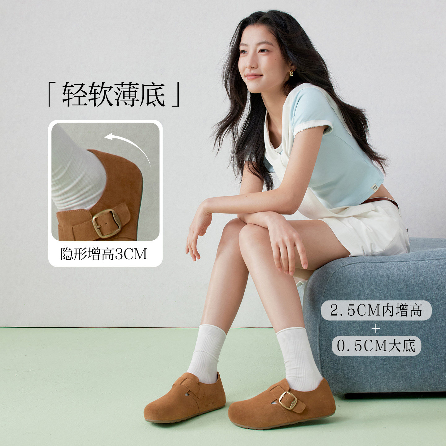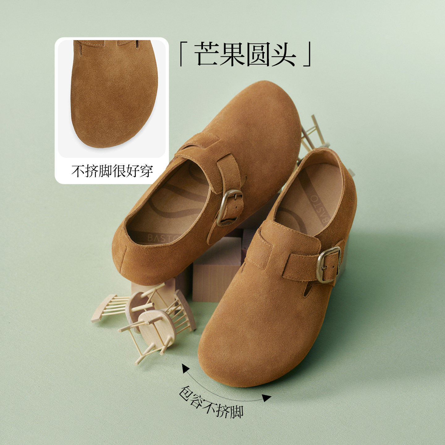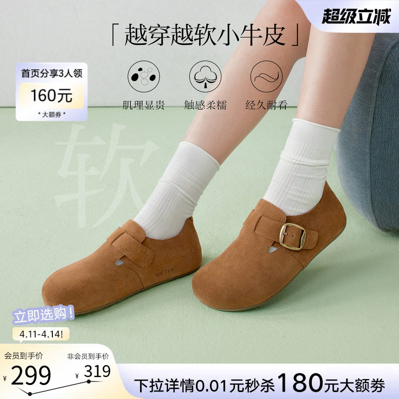 📚 百思图2026春季商场新款真皮全包勃肯鞋懒人一脚蹬女单鞋T1178AM6