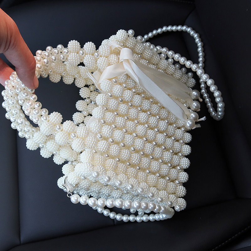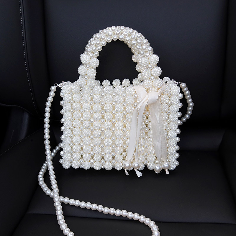 📚 手工串珠新款珍珠包diy编织包穿珠手提包成品ins简约小方包斜跨包