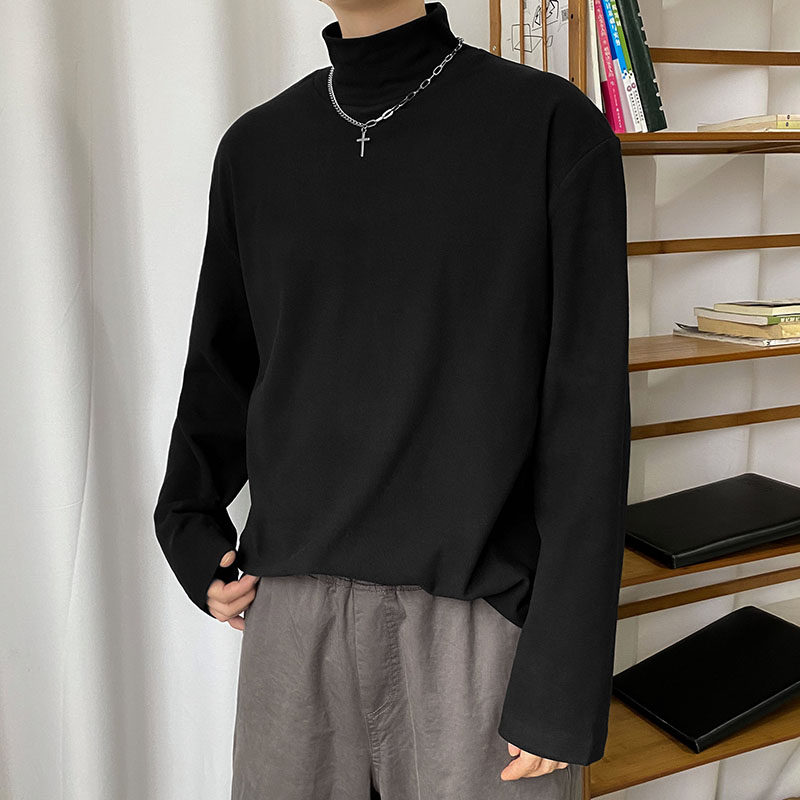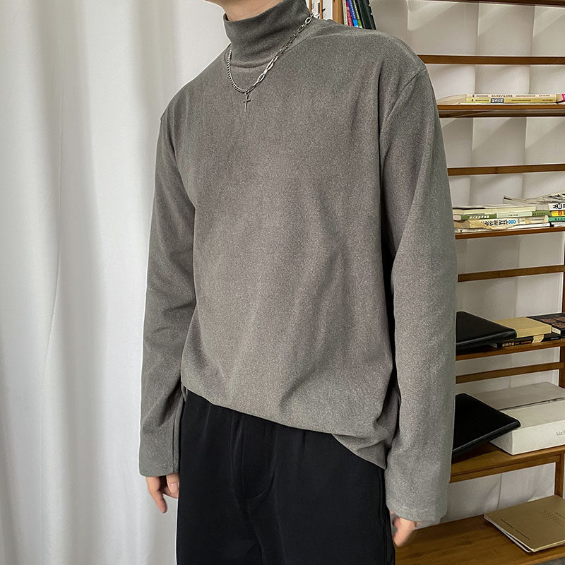 📚 高级感炸街双面德绒长袖t恤男半高领轻奢ins春秋休闲打底衫发型师