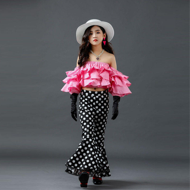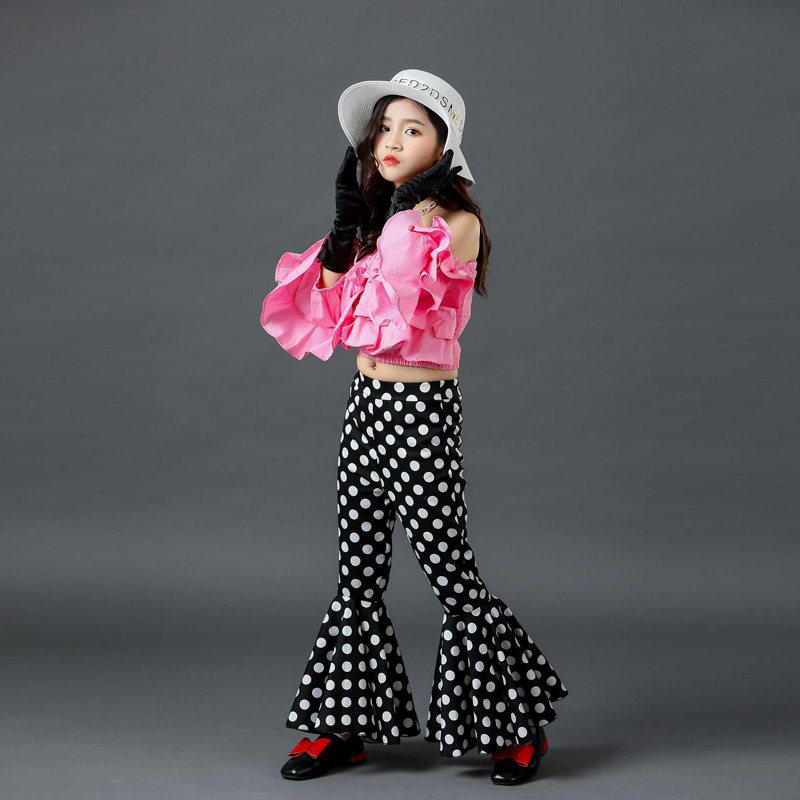 📚 儿童六一表演复古港风7080年代喇叭裤套装T台秀机车摇滚跳舞潮服