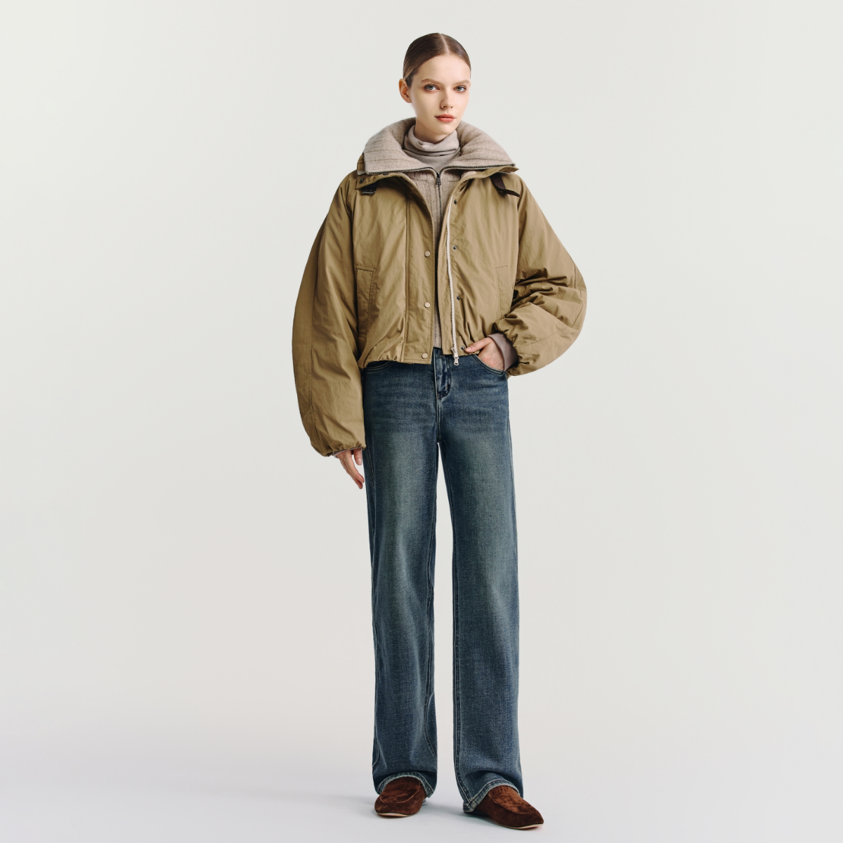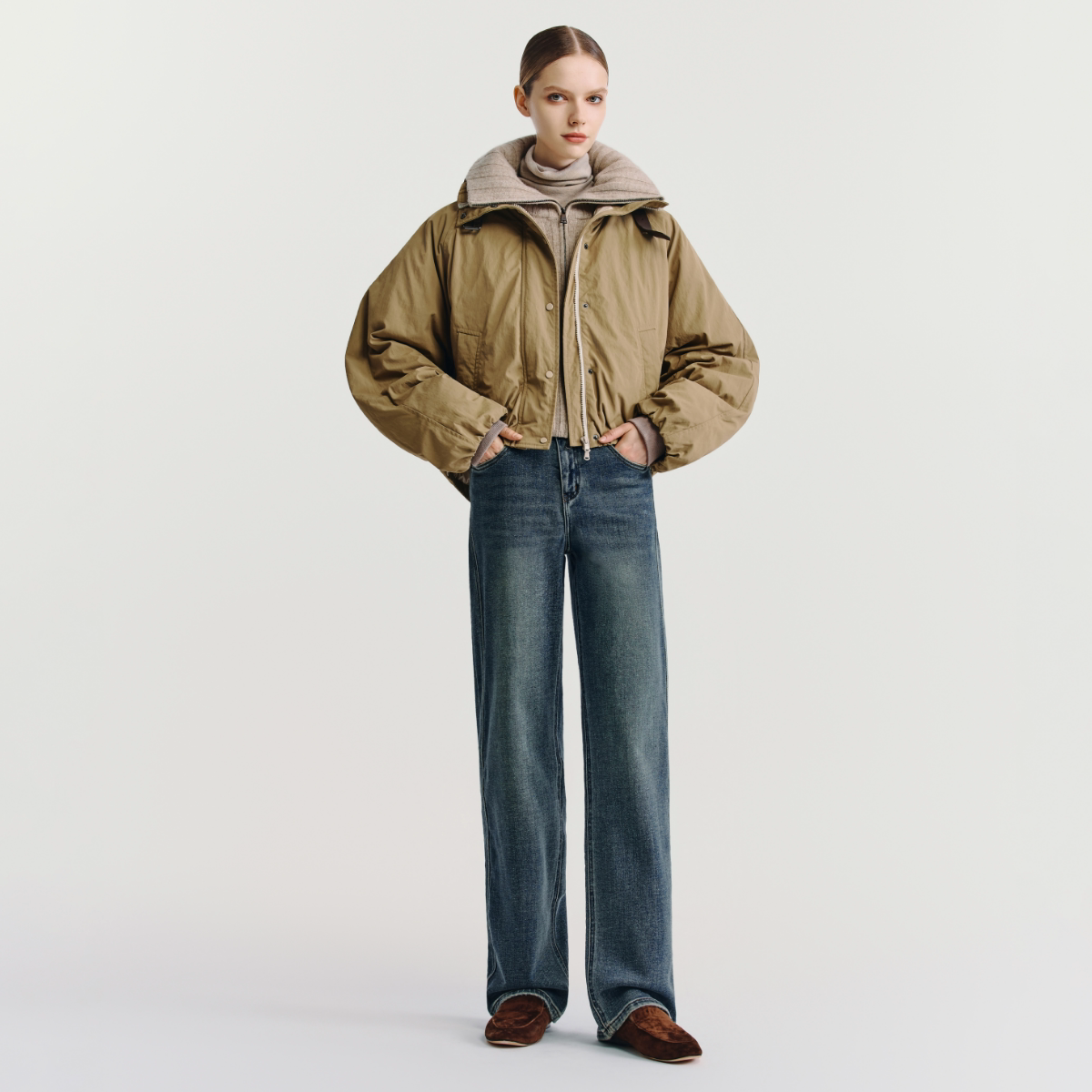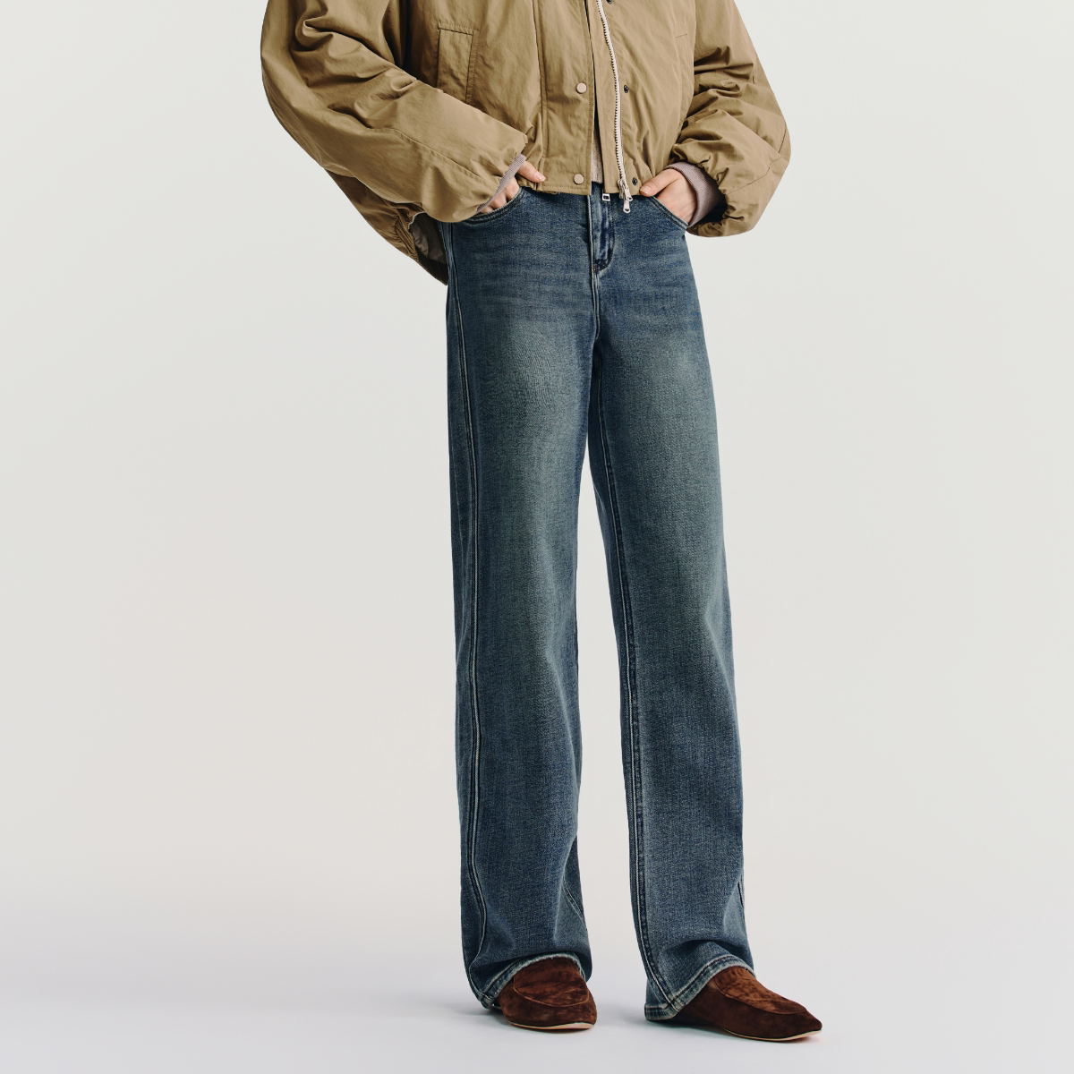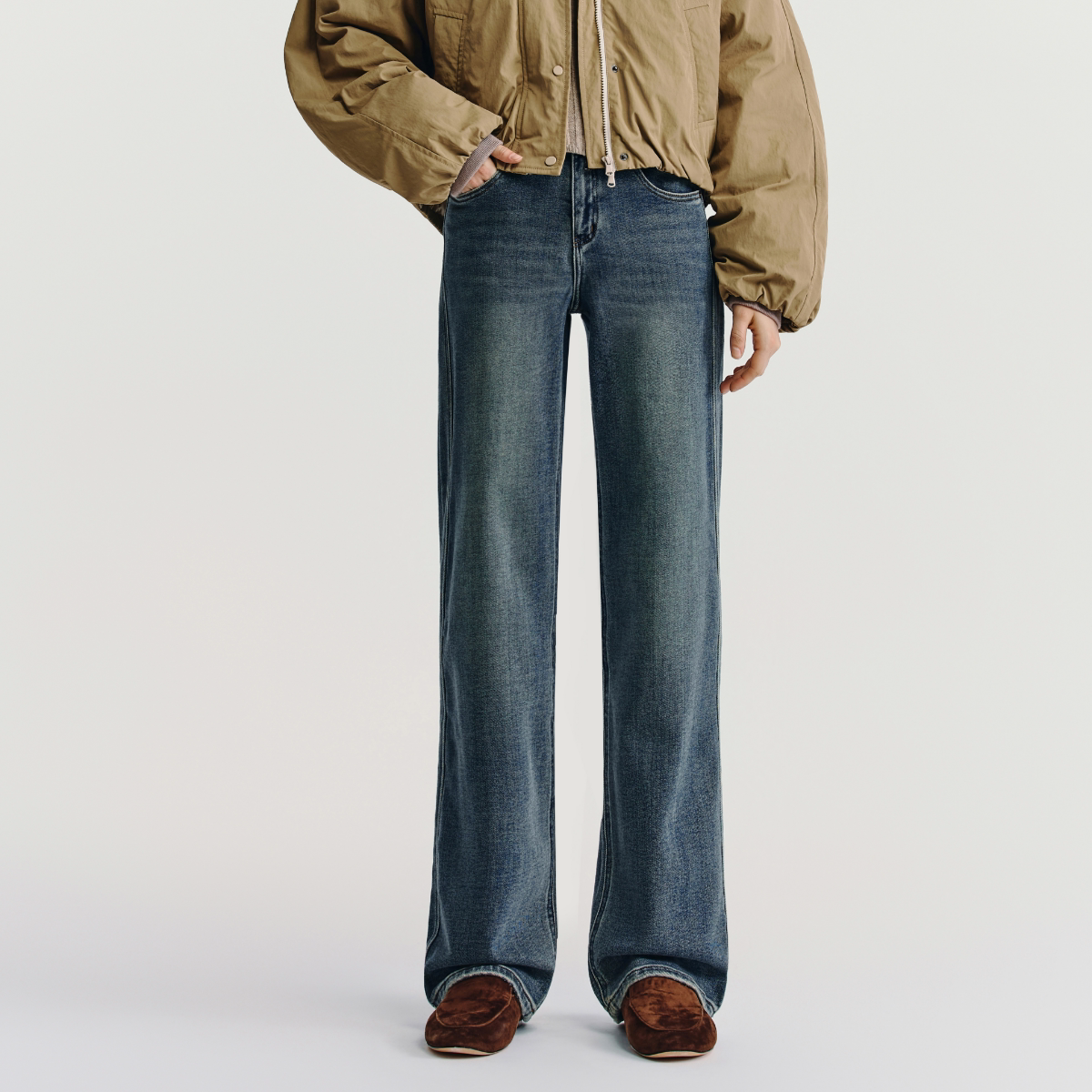 📚 HAVVA高腰加绒直筒牛仔裤修饰腿型显瘦女士裤子2025秋冬KH3-3808
