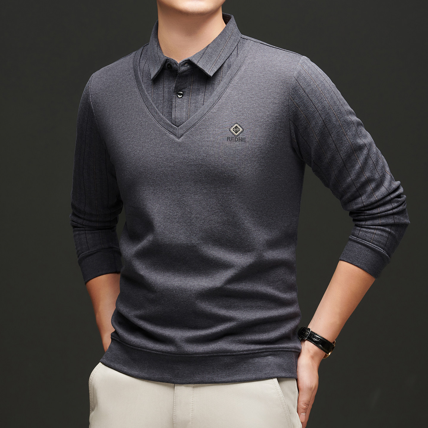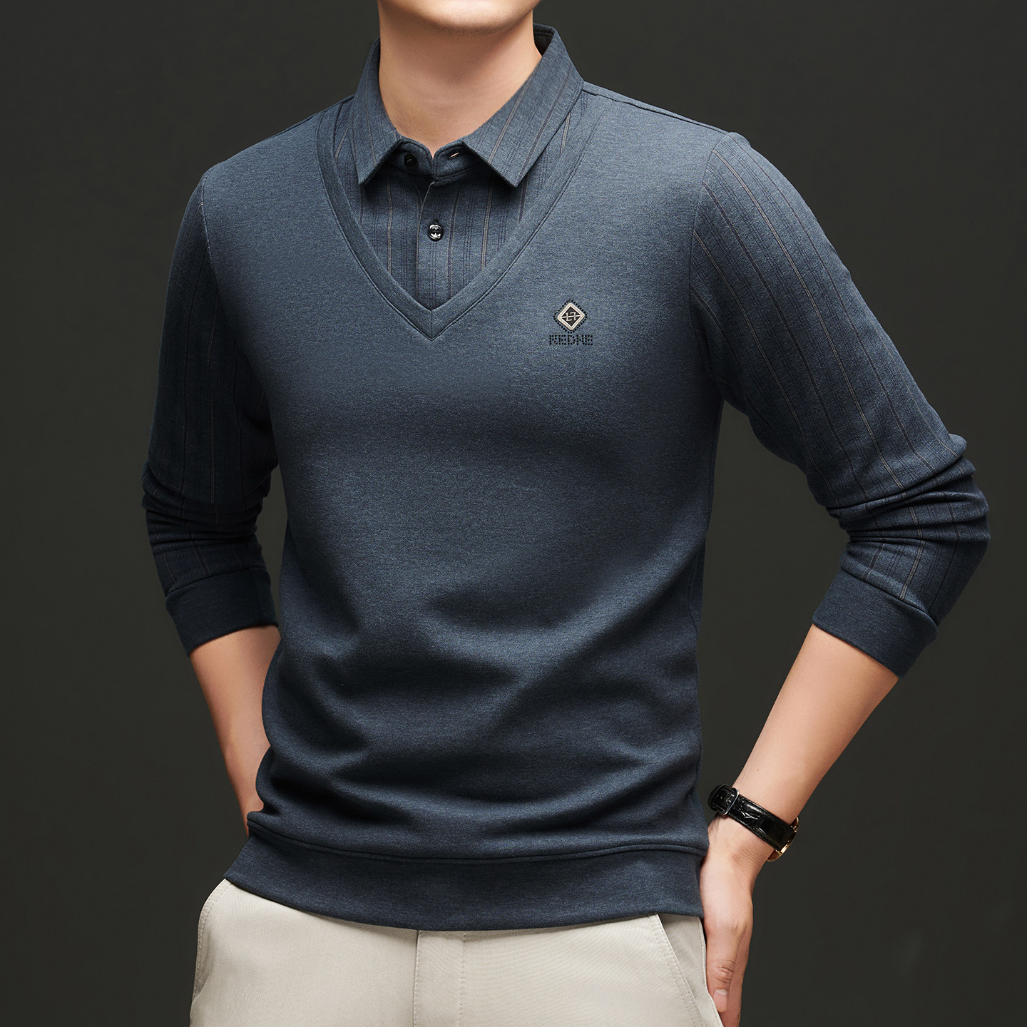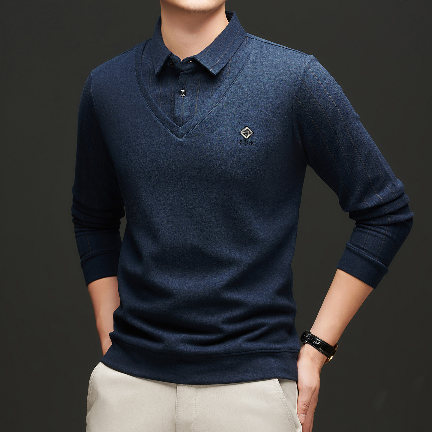 📚 2025年假两件长袖t恤男士春秋季新款中年爸爸装休闲宽松打底上衣