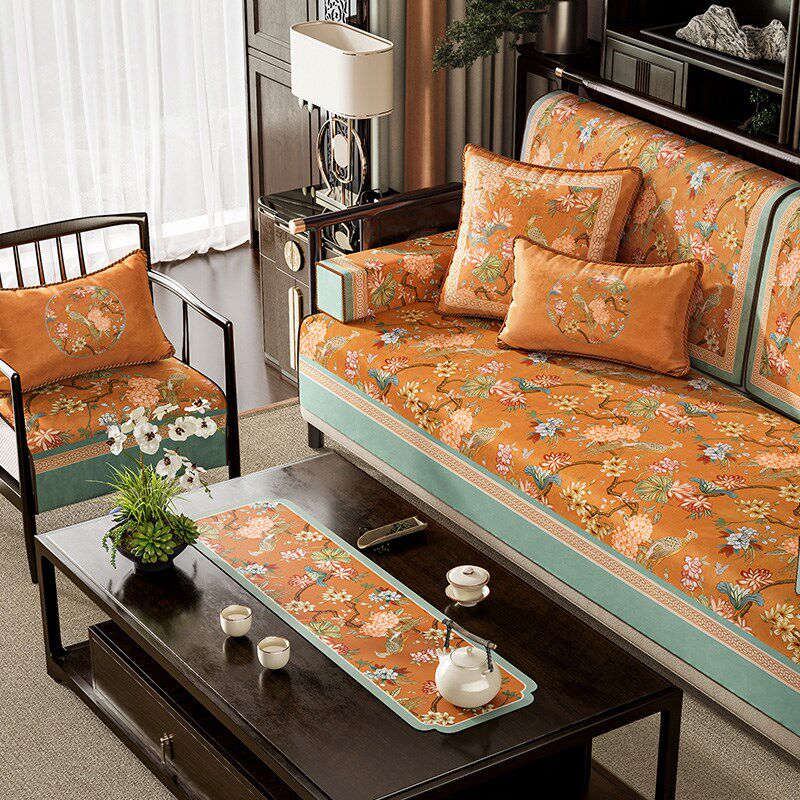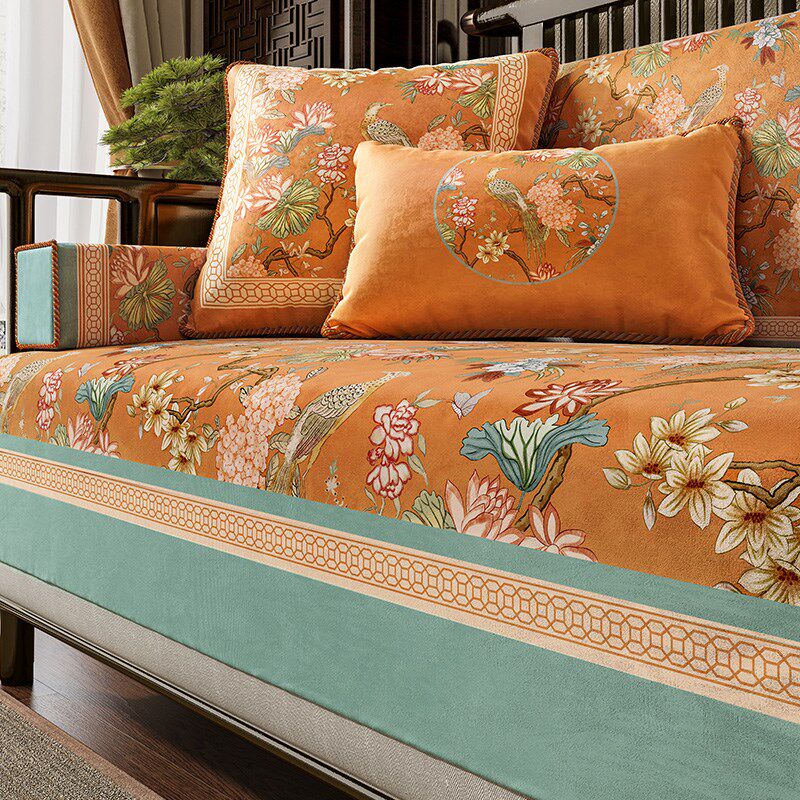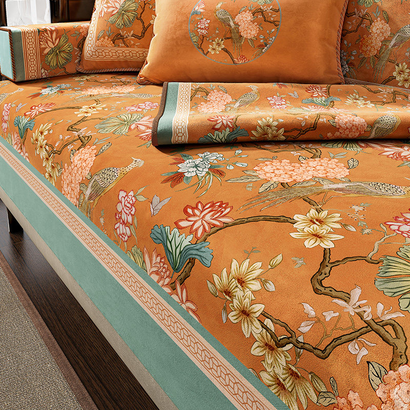📚 美式高级感一片式沙发坐垫防滑四季通用云柔绒扶手靠背盖布山绣球