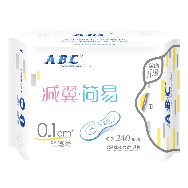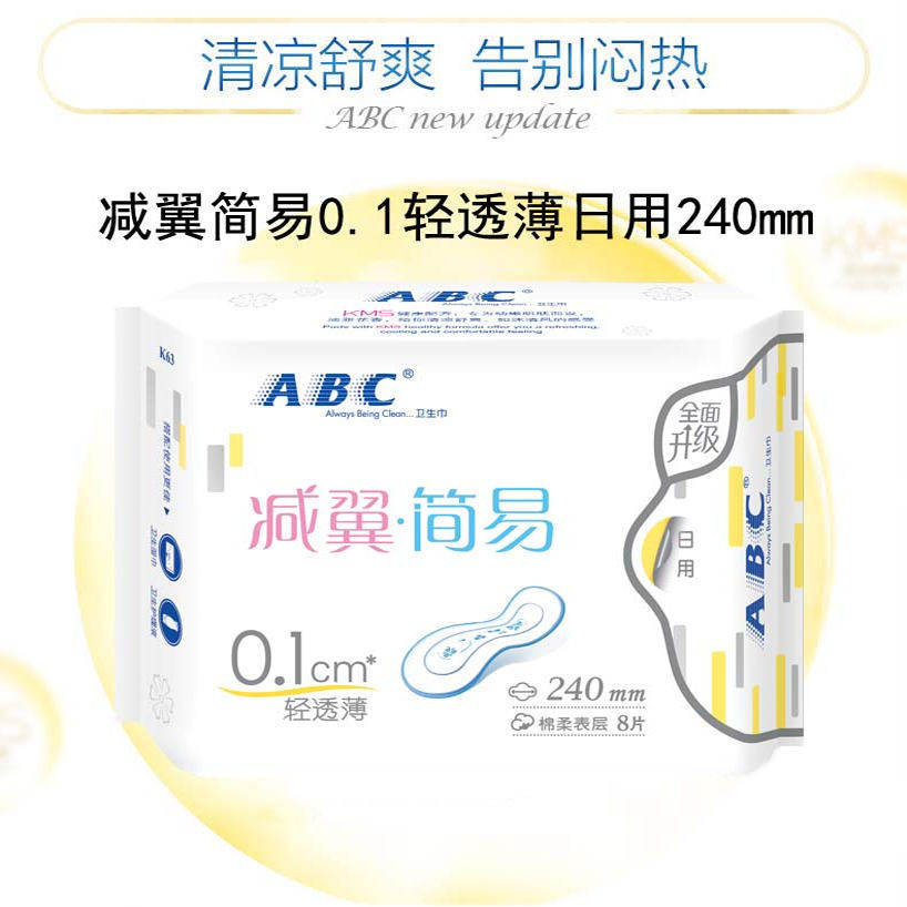 📚 ABC减翼卫生巾超吸超薄棉柔亲肤日用240mm女姨妈巾官方正品无护翼