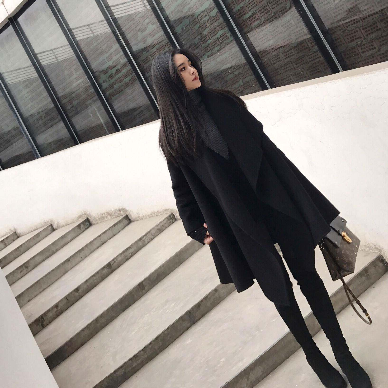 📚 香港赫本风斗篷毛呢外套女秋冬宽松中长款呢子双面呢大衣小个子潮