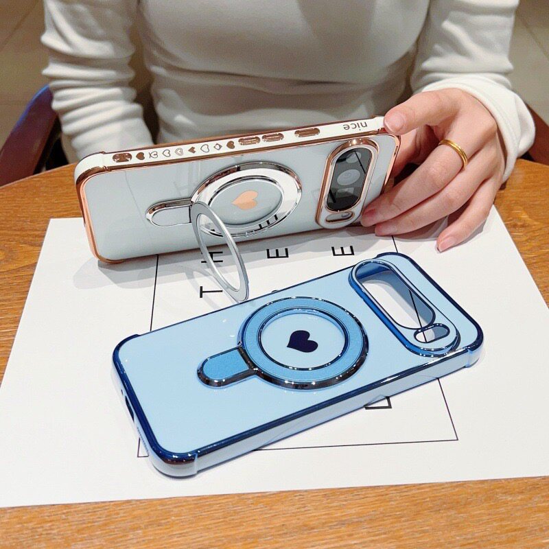 📚 侧边爱心适用于谷歌Pixel10proXL手机壳Pixel9proXL五金支架9A时尚Google Pixel9pro电镀保护壳8pro谷歌8A/7A