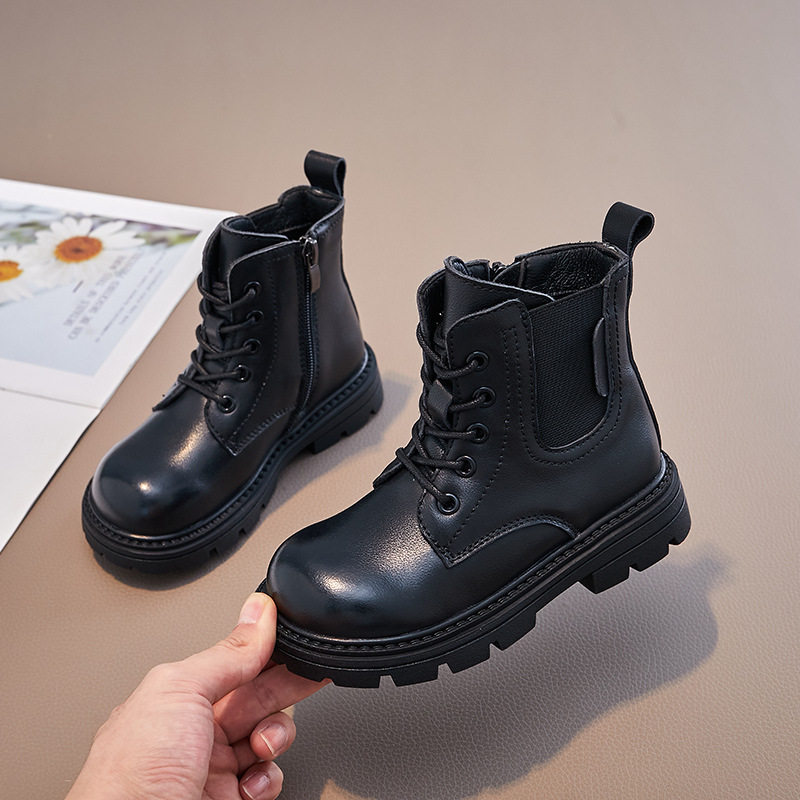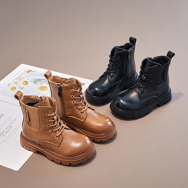 📚 头层牛皮女童二棉靴子儿童马丁靴加绒男童防水冬季新款大棉雪地靴