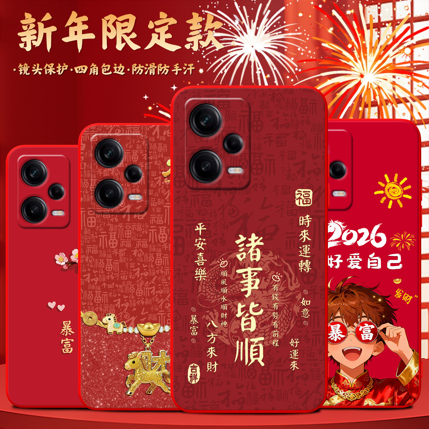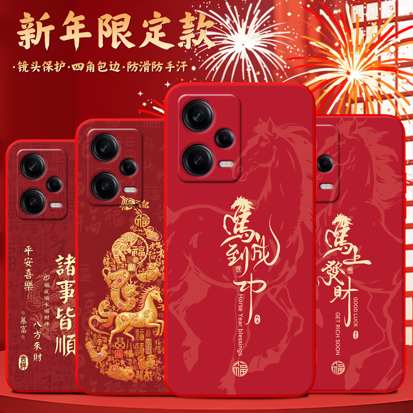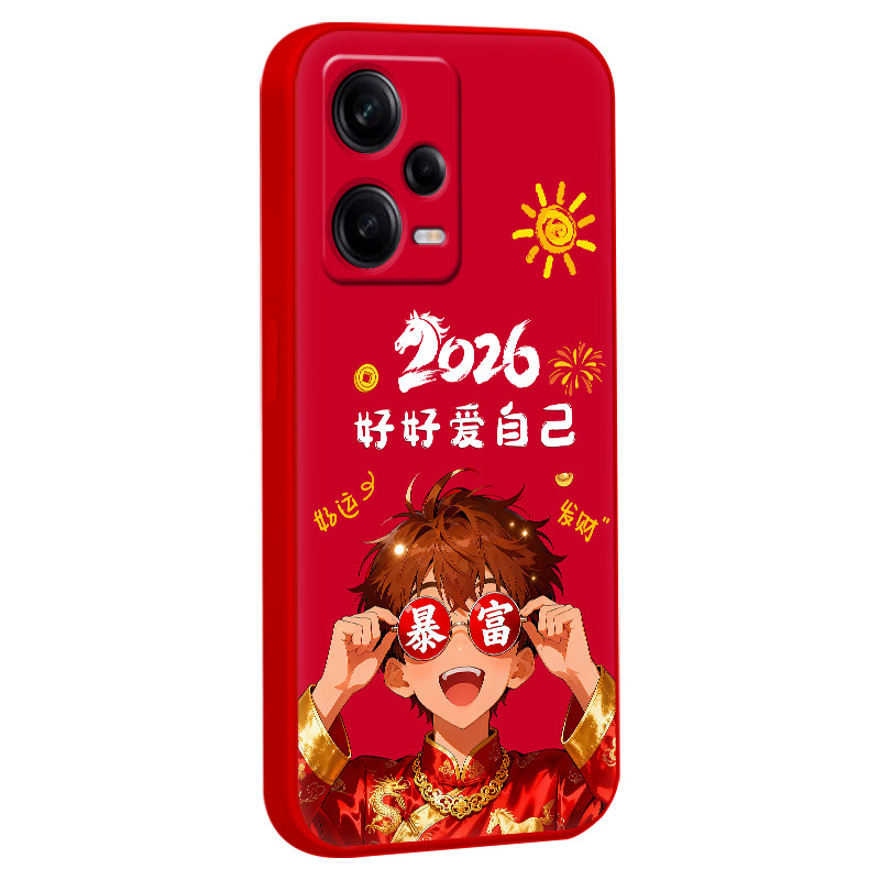 📚 luckrider适用于红米note12pro+网红爆款22101316uc马年红色Redmi手机软壳。贴膜hongmi直边hmNote12por+防摔