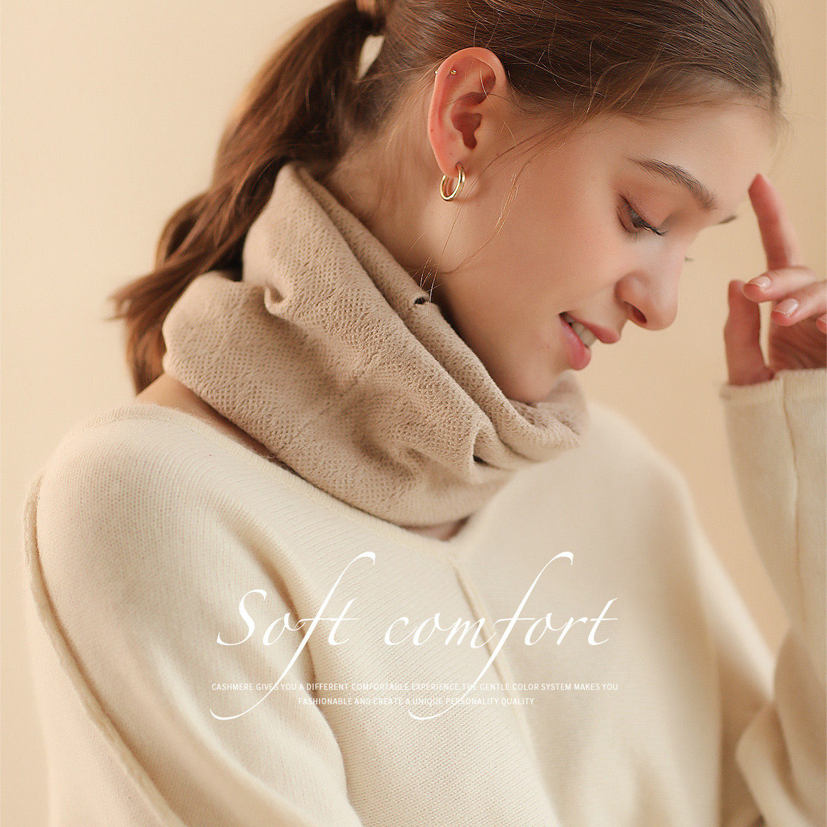 📚 围巾女士秋冬季菱形格针织面罩保暖围脖女士护脖纯色发带百搭帽子