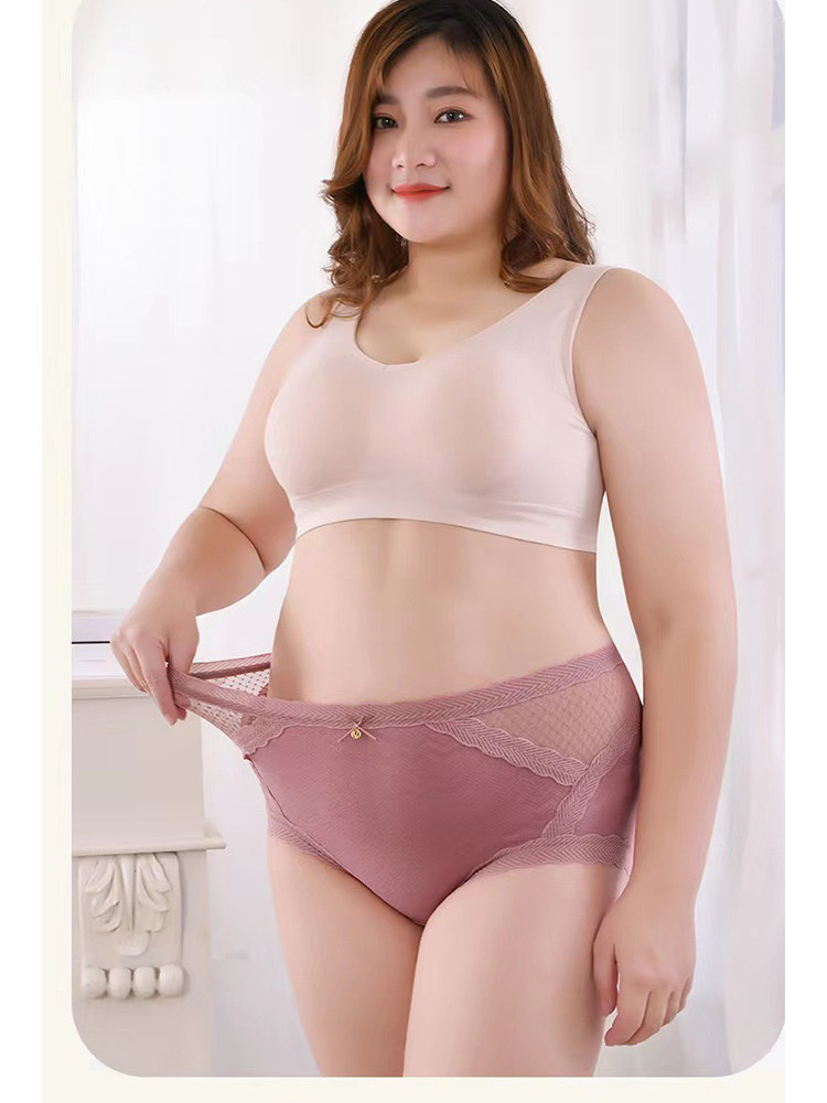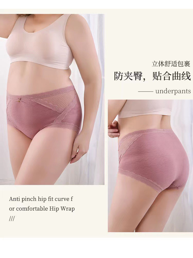📚 加肥加大码薄棉蕾丝内裤女胖mm200斤蕾丝边无痕妈妈高腰三角内裤