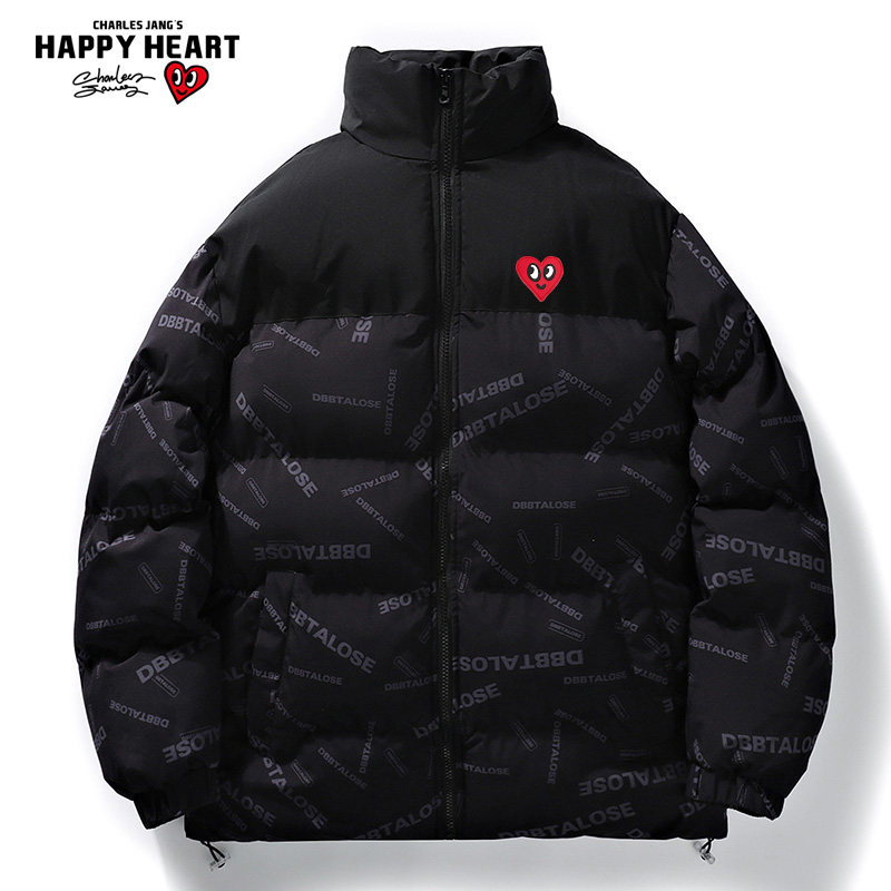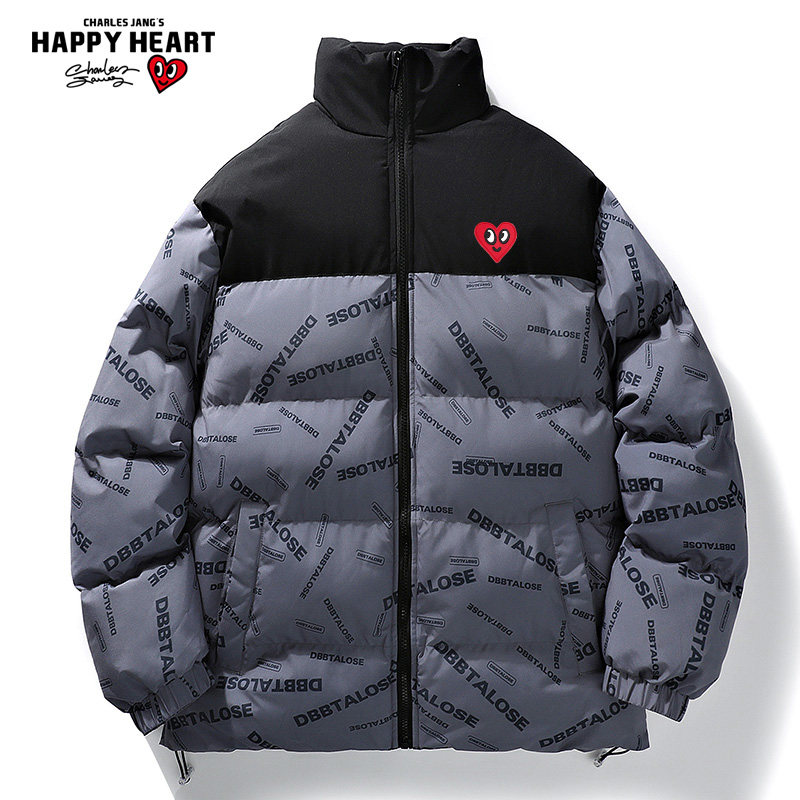 📚 查尔斯桃心 撞色字母棉服外套男短款秋冬季2026新款加厚爱心棉衣