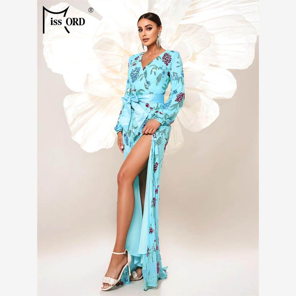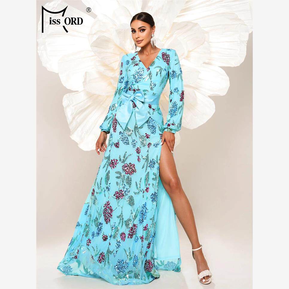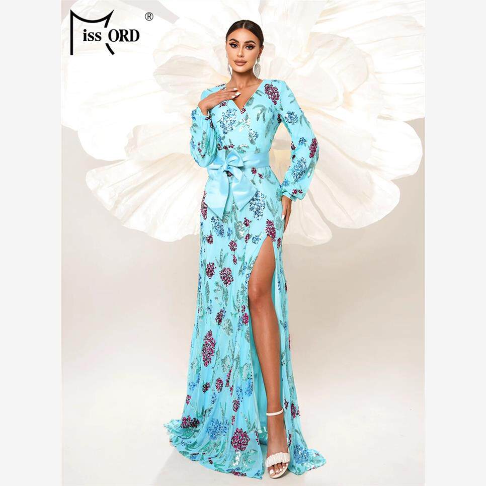 📚 V Neck Long Sleeved Evening Floral Formal Occasion Dresses