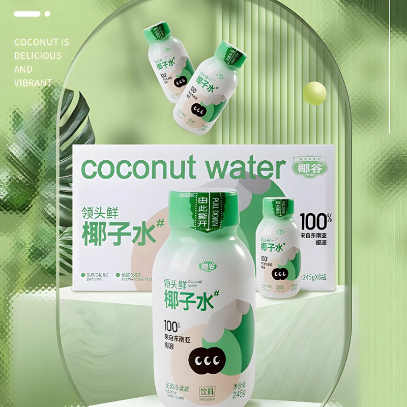 📚 椰谷领头鲜100%椰子水245g*8瓶鲜榨纯天然椰子饮料0脂肪整箱饮品