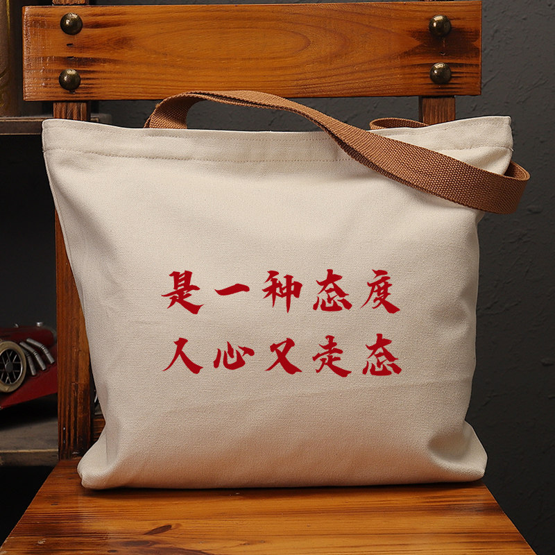 📚 是一种态度帆布袋女包上班大容量单肩包国潮复古手提袋环保购物袋