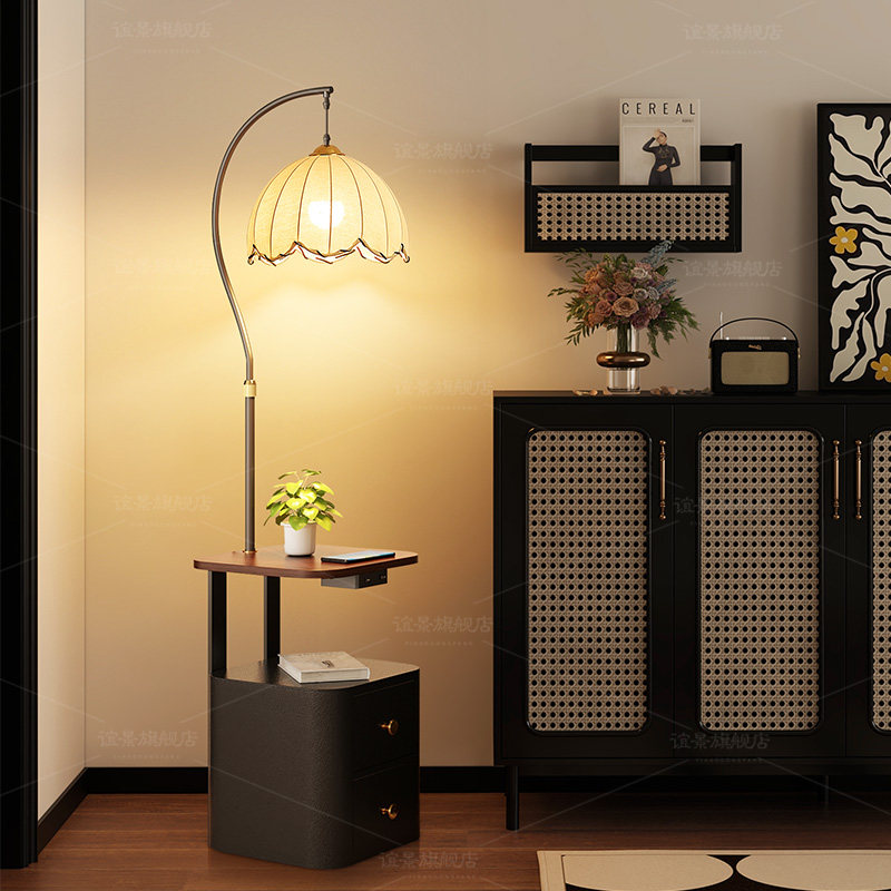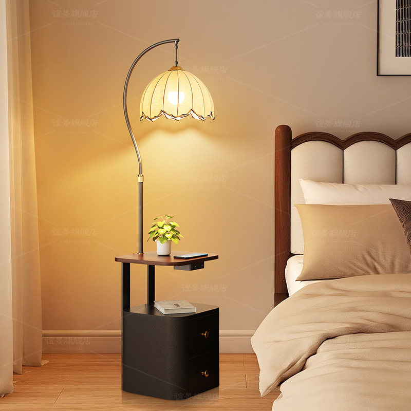 📚 落地灯卧室床头柜置物一体氛围灯中古风高级感客厅沙发旁边几台灯