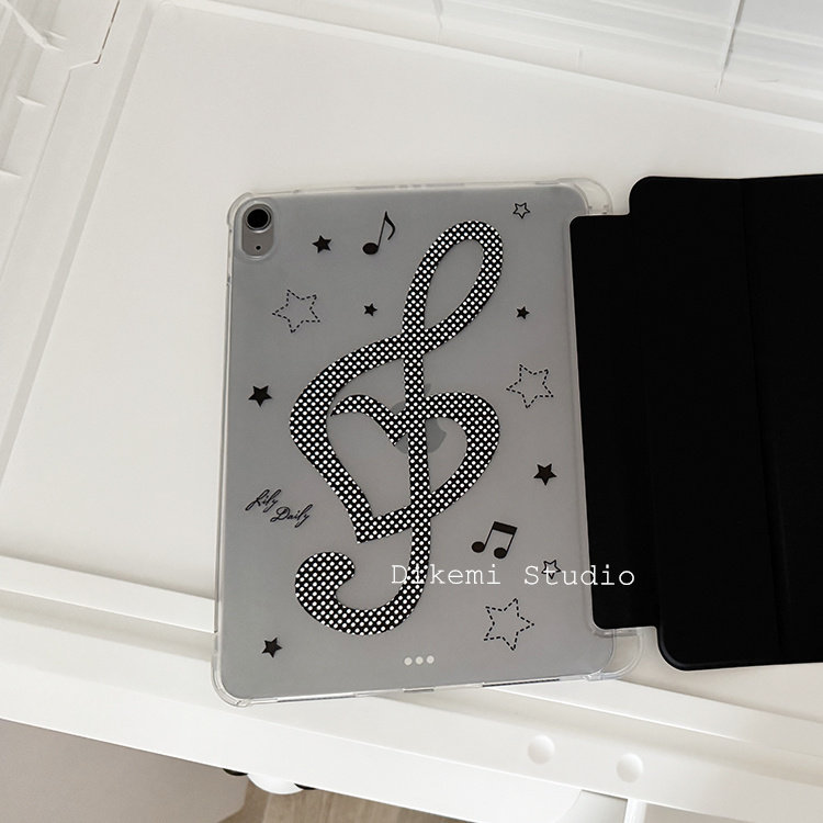 📚 韩国ins小众古早风复古音符带笔槽ipad12/11平板电脑保护壳支架air8/7/6适用苹果ipad A16/M4保护皮套防摔