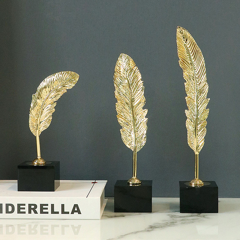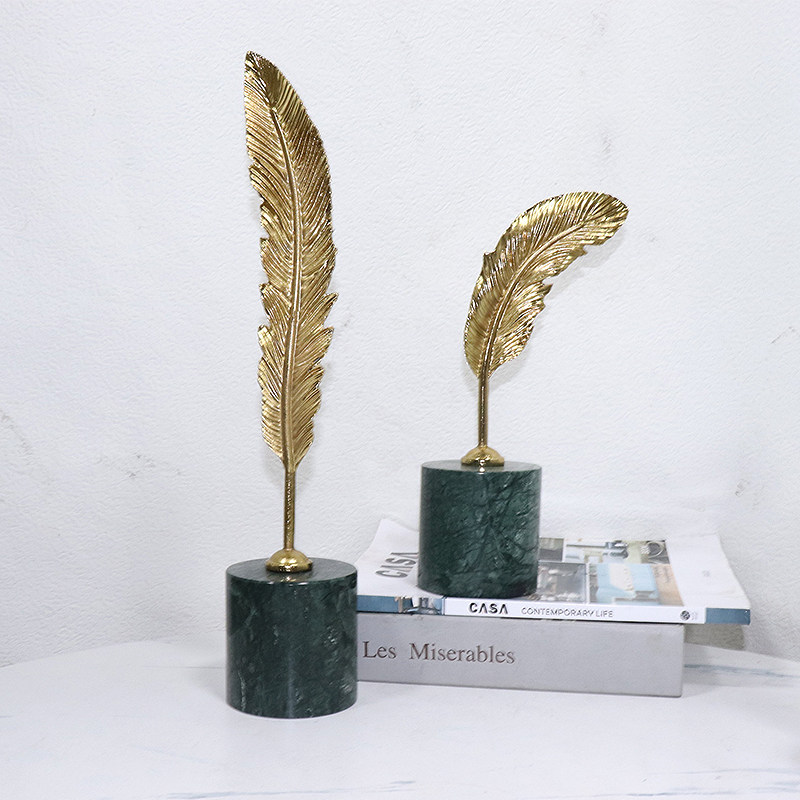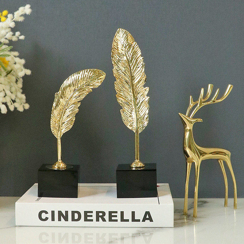 📚 现代轻奢高颜值金属金色羽毛大理石书柜酒柜电视柜桌面装饰品摆件