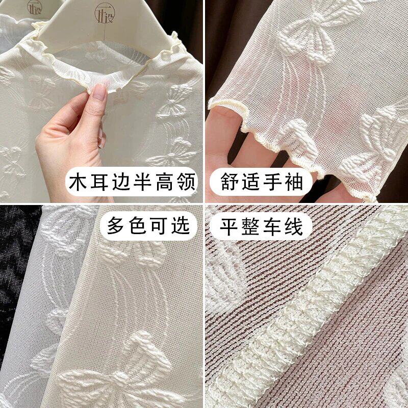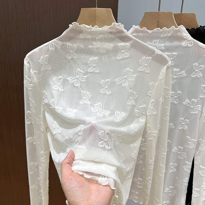 📚 春季半高领蕾丝打底衫女秋冬叠穿毛衣内搭纱衣薄款高级感网纱上衣