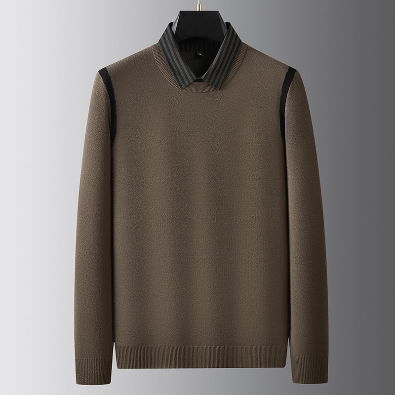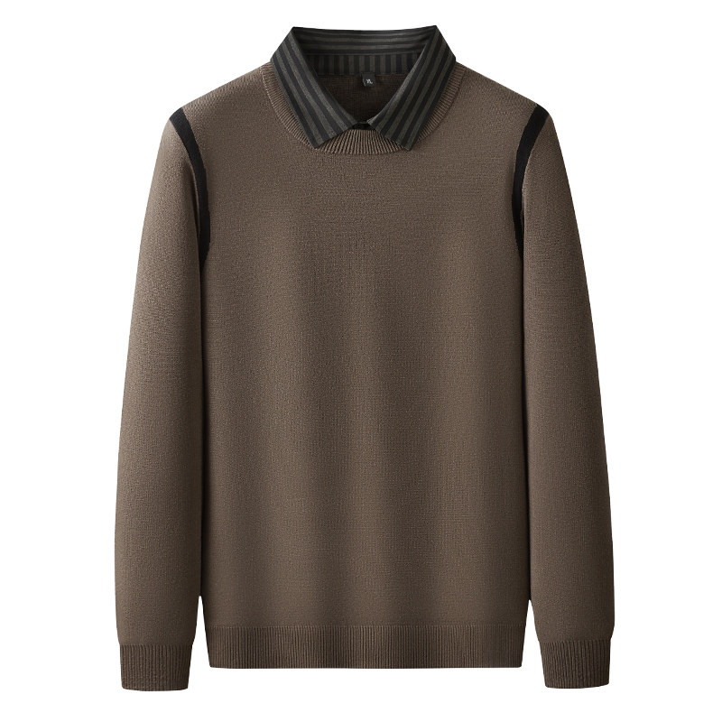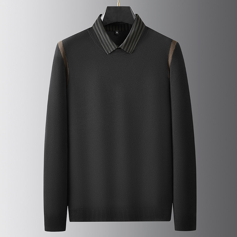 📚 秋冬款大码男士长袖衬衫领打底毛衣胖子宽松休闲假两件针织衫上衣