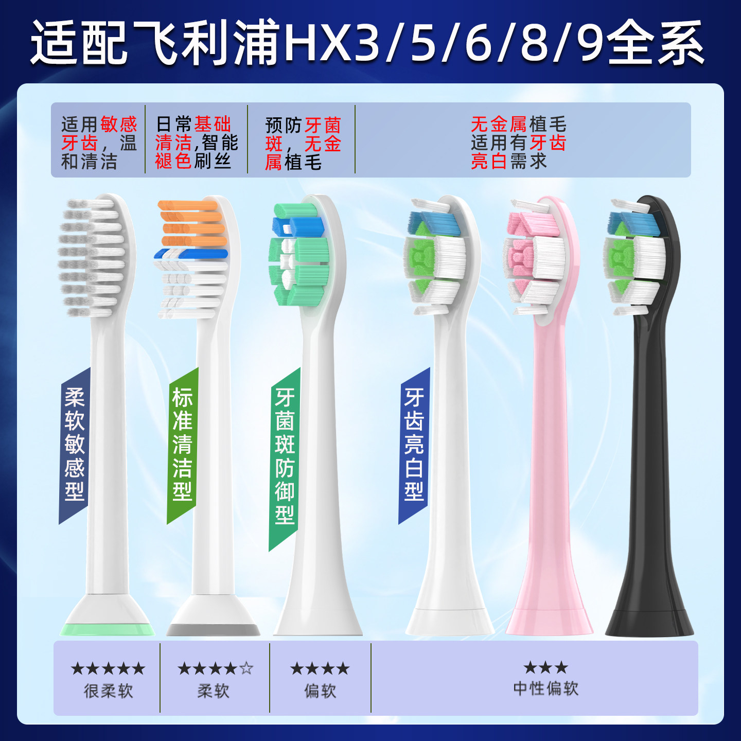 📚 适用飞利浦电动牙刷头菲利普hx6710/6720/6610/6920/6760/6240-05