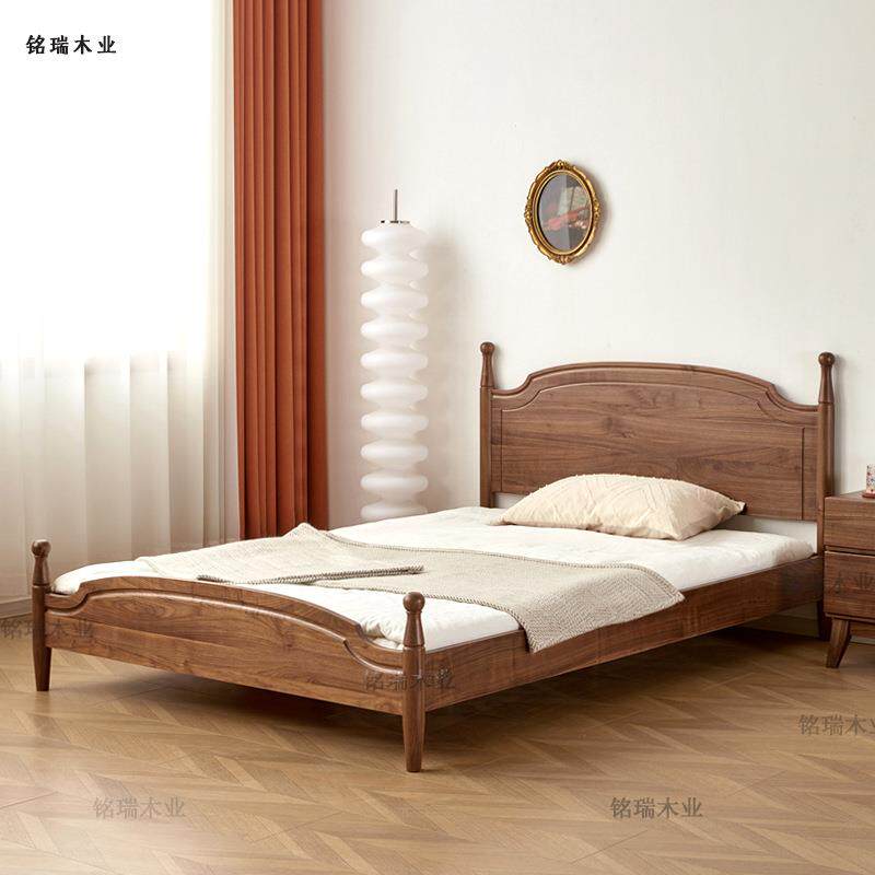 📚 美胡桃木实木大板儿童黑床现代简约卧QGC室1米5小全北户型单人悬