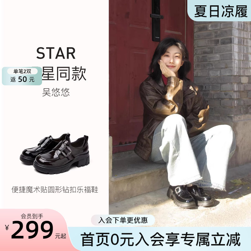 📚 魏笑/吴悠悠/王韵琳同款百田森黑色小皮鞋女乐福鞋厚底英伦风皮鞋