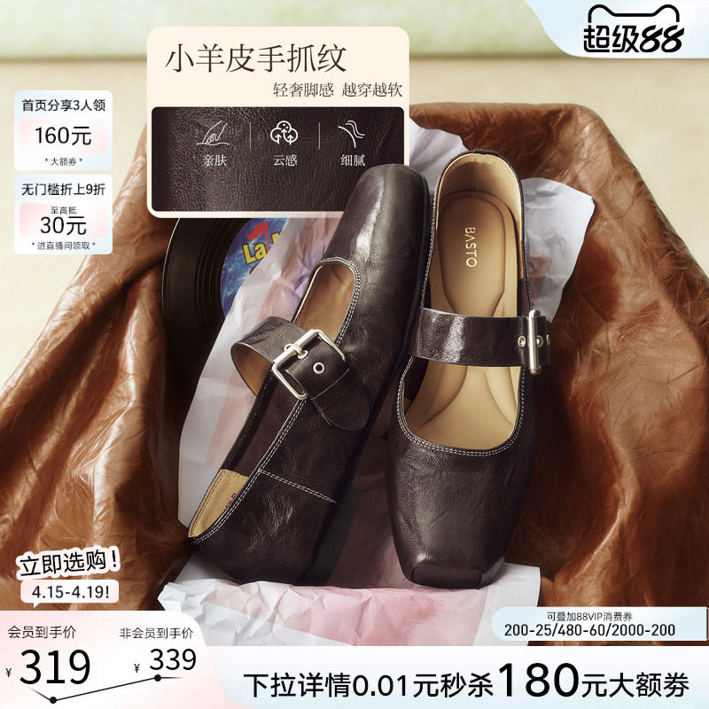 📚 【春日手稿】百思图26春商场新款法式羊皮玛丽珍鞋漂亮浅口单鞋女