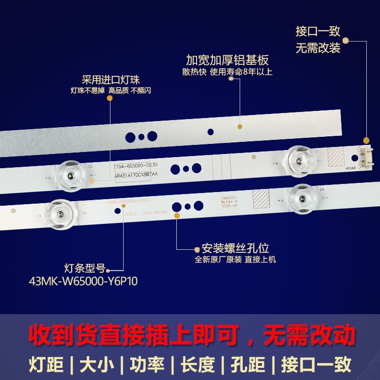 📚 全新适用65寸创维65G50液晶电视机背光LED 灯条43MK-W65000-Y6P10