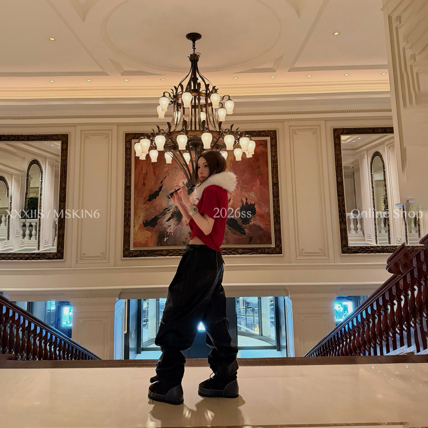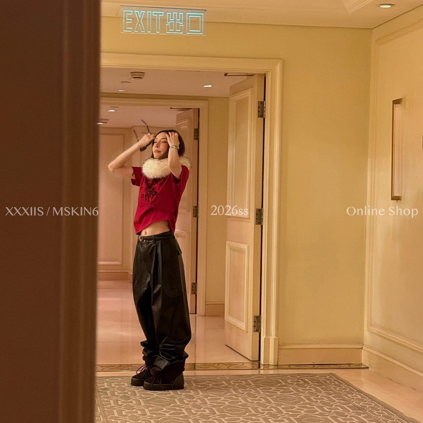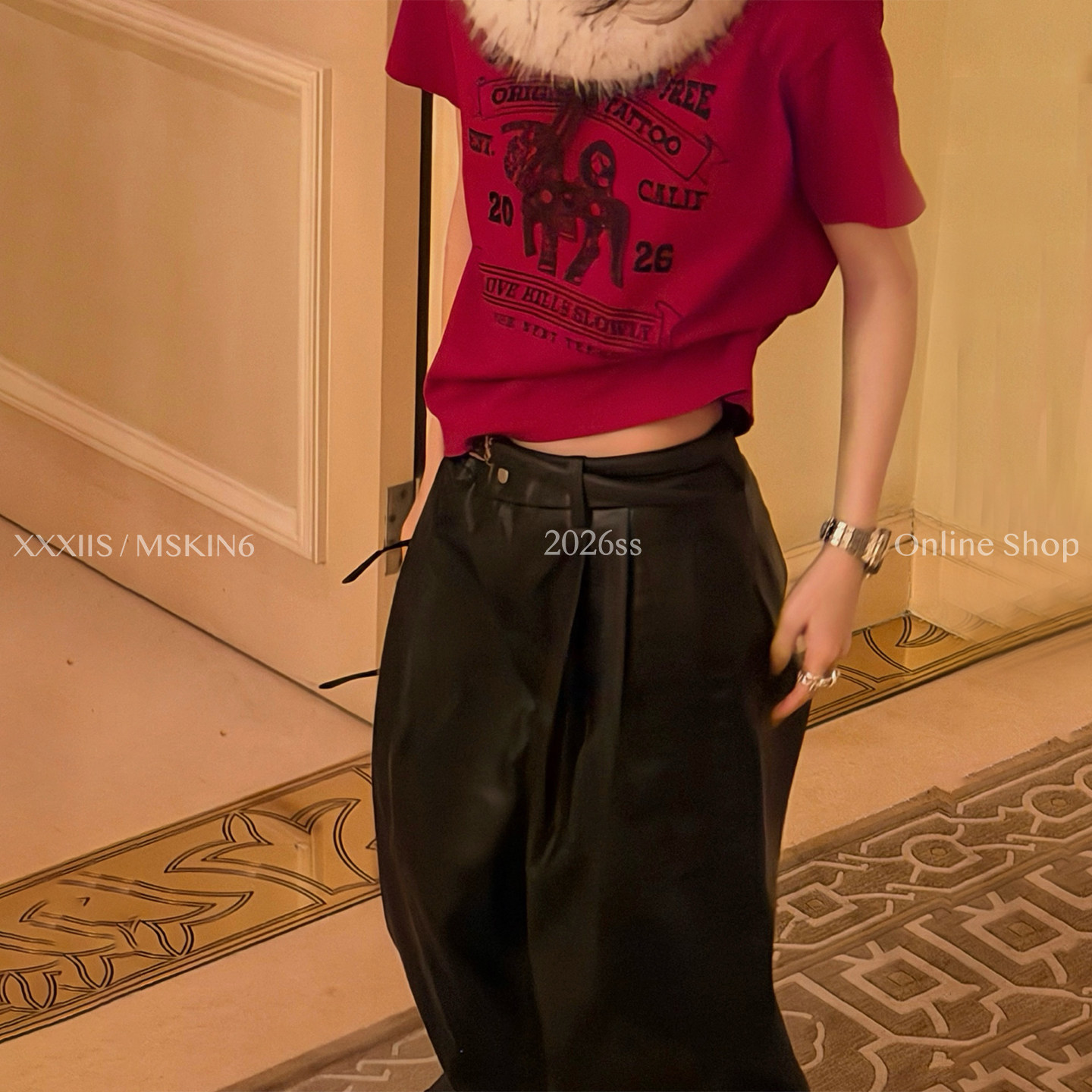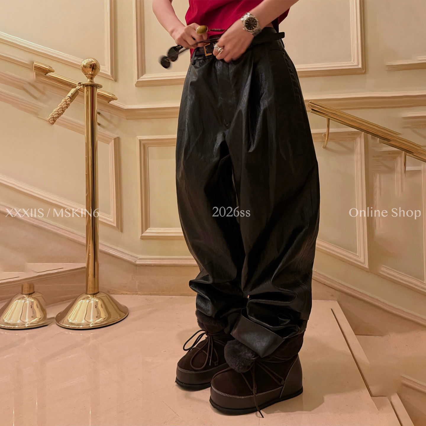 📚 早春新款休闲直筒皮裤女高腰阔腿显瘦百搭PU哑光宽松长裤