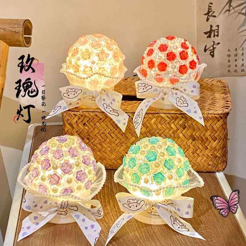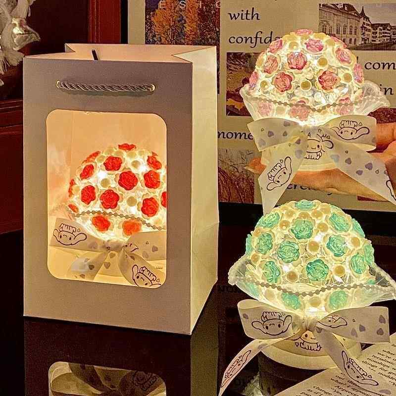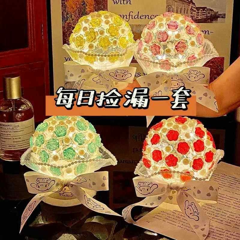 📚 仿真手捧花3D立体拼图冰点透明玫瑰夜灯不凋谢玫瑰花束diy材料包