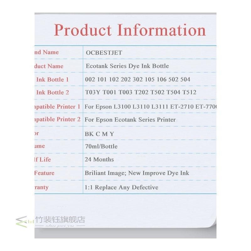 📚 103 T103 104 T104 522 T522 Refill Dye Ink Epson L3100 L3110