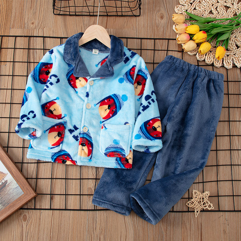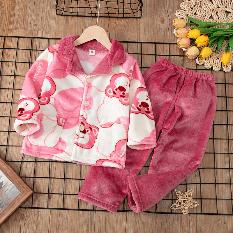 📚 春秋冬季儿童法兰绒睡衣男童女童加厚款珊瑚绒宝宝保暖家居服套装