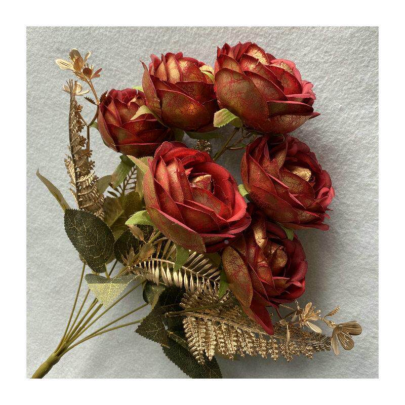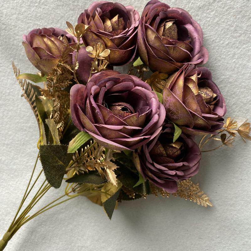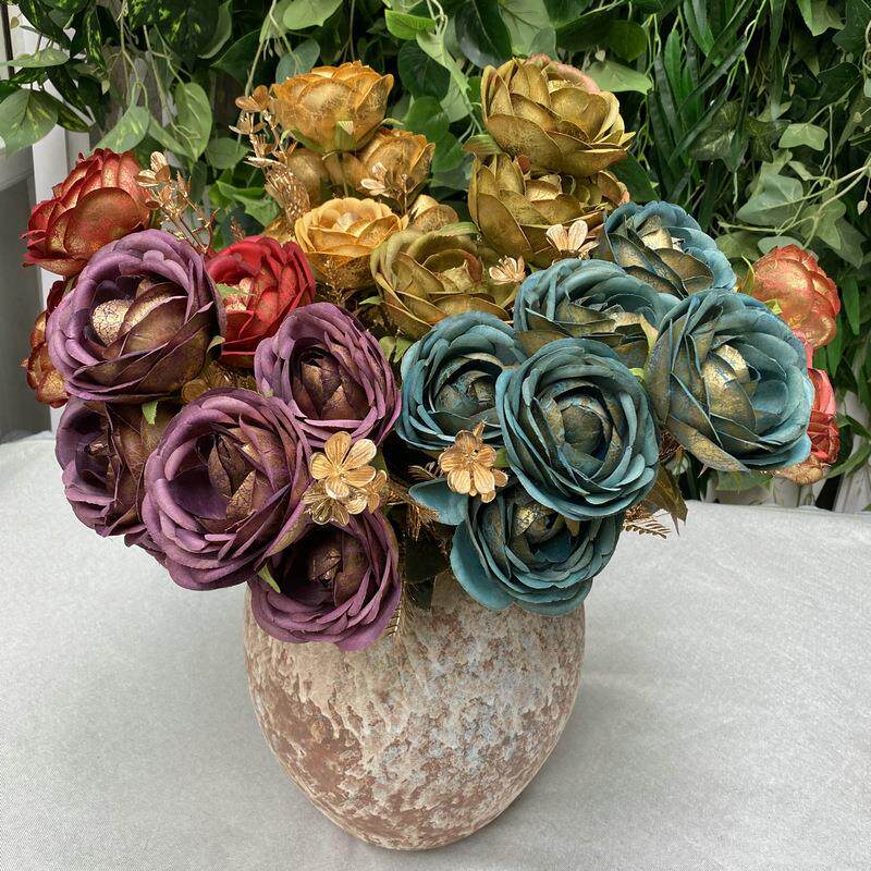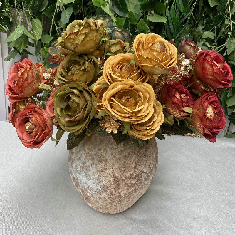 📚 梅丽金布9头茶梅 室内客厅餐桌仿真插花花束 摄影拍摄道具假花定