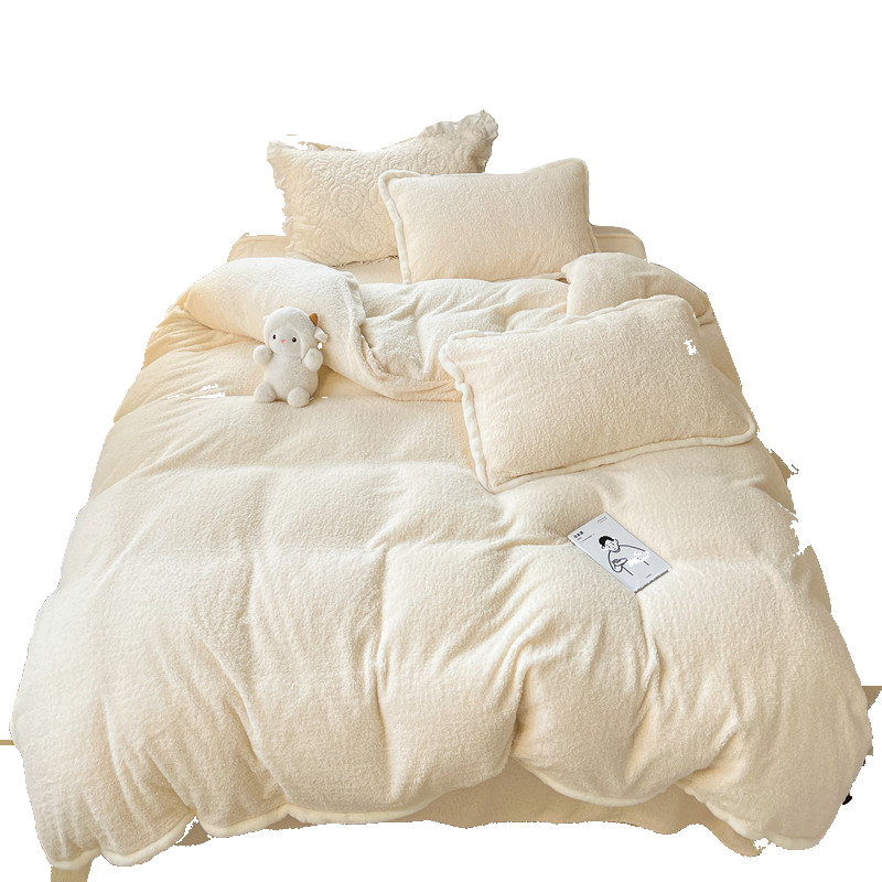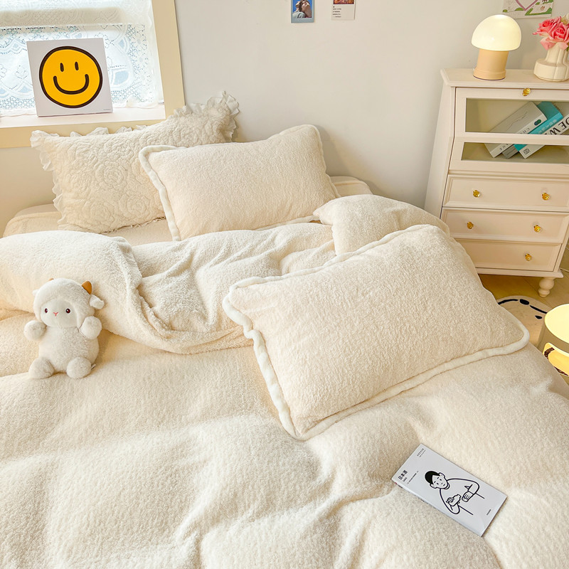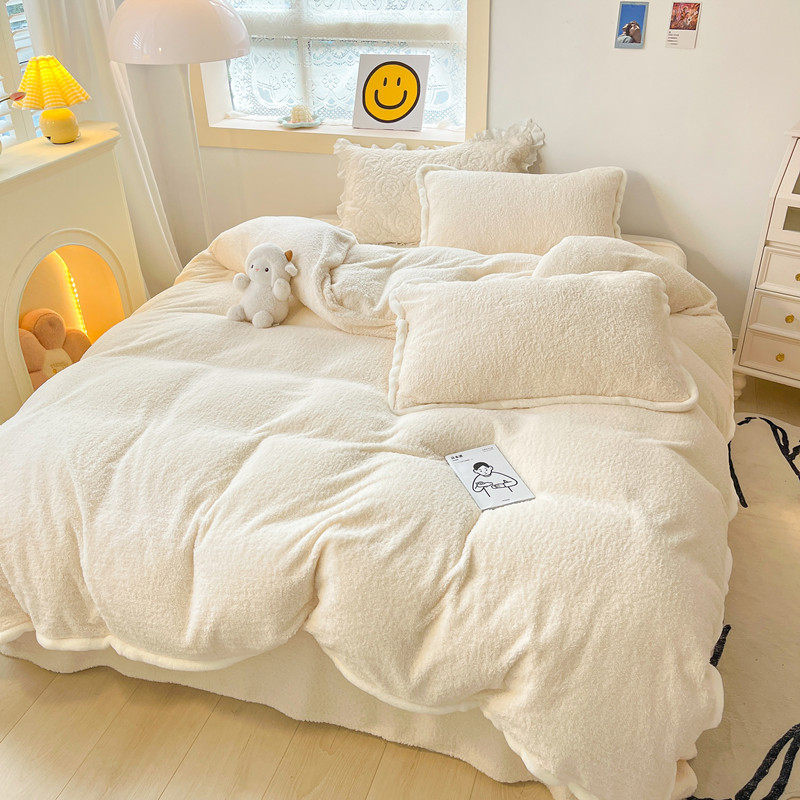 📚 冬季加厚泰迪绒四件套ins兔兔绒包边双面绒被套简约纯色加绒床品