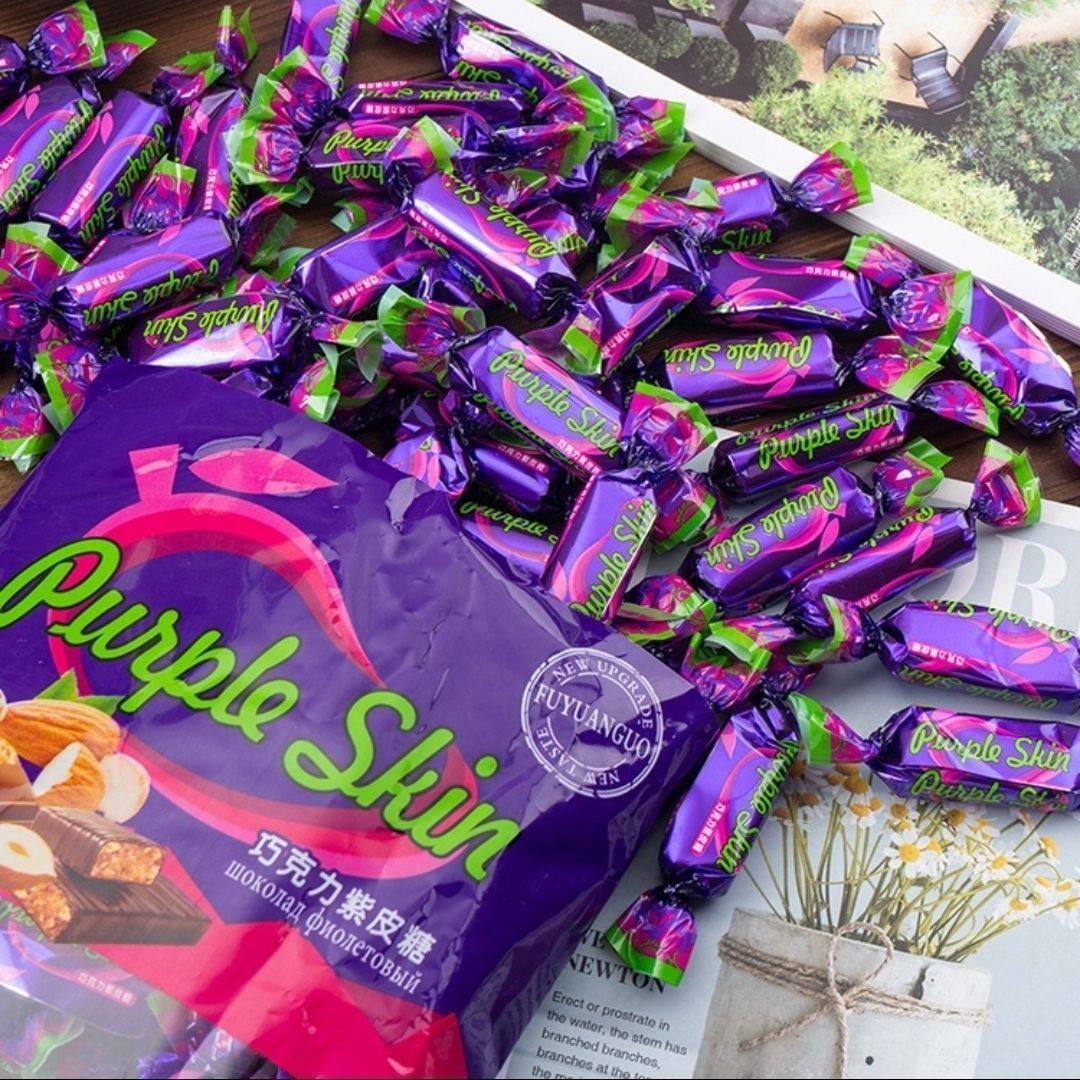 🍬亲爱的小仙女们,今天我要给大家种草一款超级好吃的俄罗斯风味零食——紫皮糖袋装500g国产巧克力花生喜糖!😍