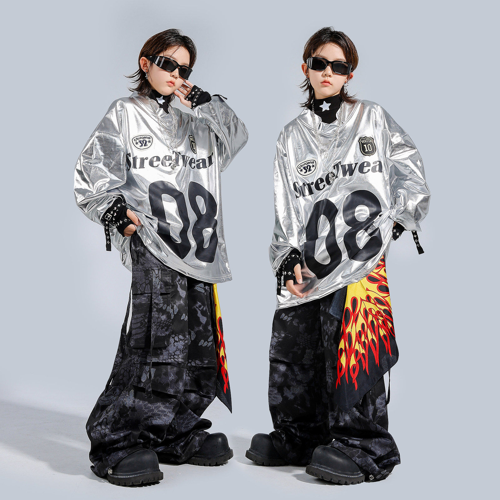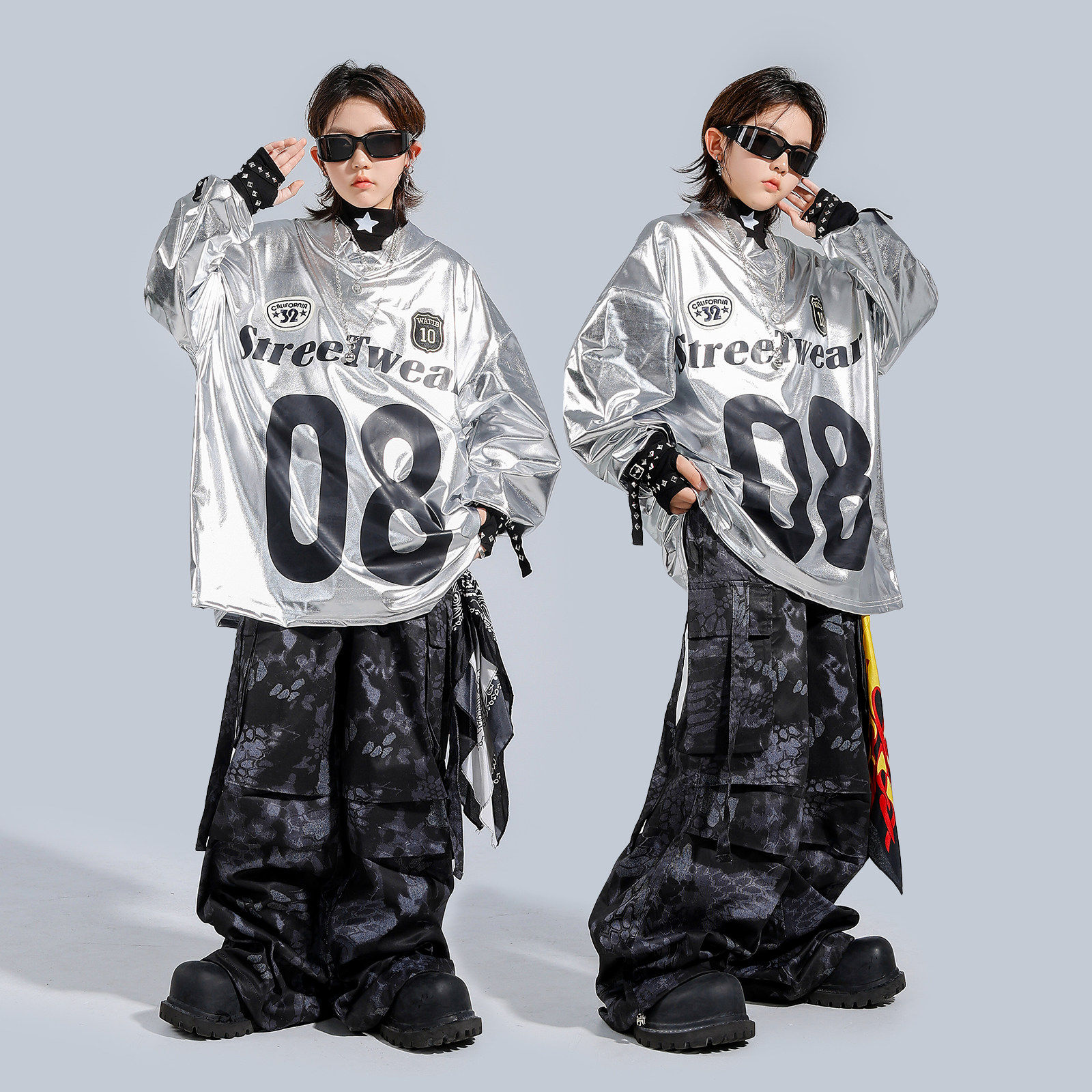 📚 元旦儿童嘻哈街舞团体演出服男女童HIPHOP潮服酷帅银色表演服套装