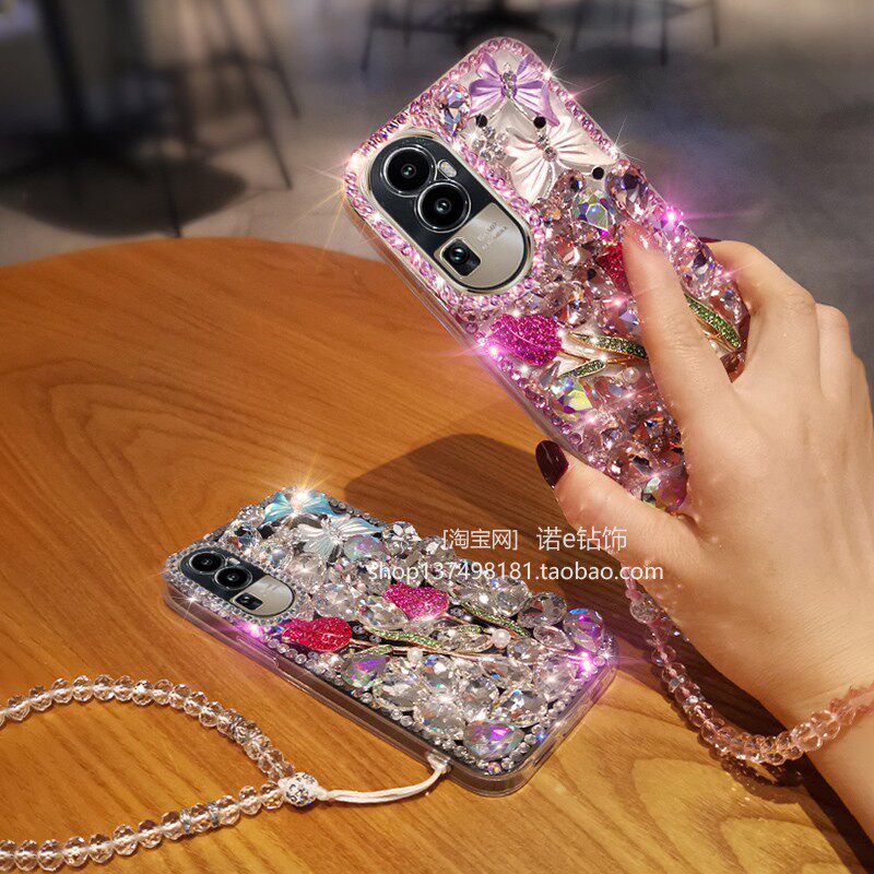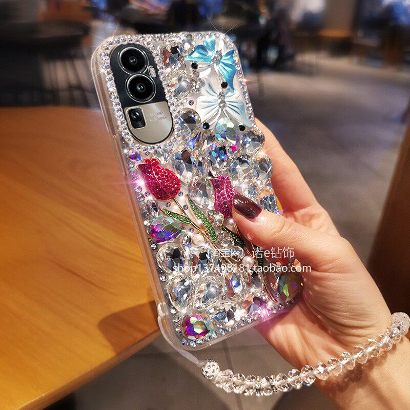 📚 适用于oppoReno10手机壳Reno9玫瑰满钻8闪钻7女6潮5粉钻4SE白钻3pro钻2全包Z镶钻2Z彩钻Ace2包边2F防摔