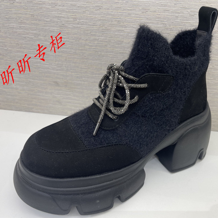 📚 蹀愫专柜正品25冬季一脚蹬时装靴女裸靴厚底增高短靴子TA65716-51