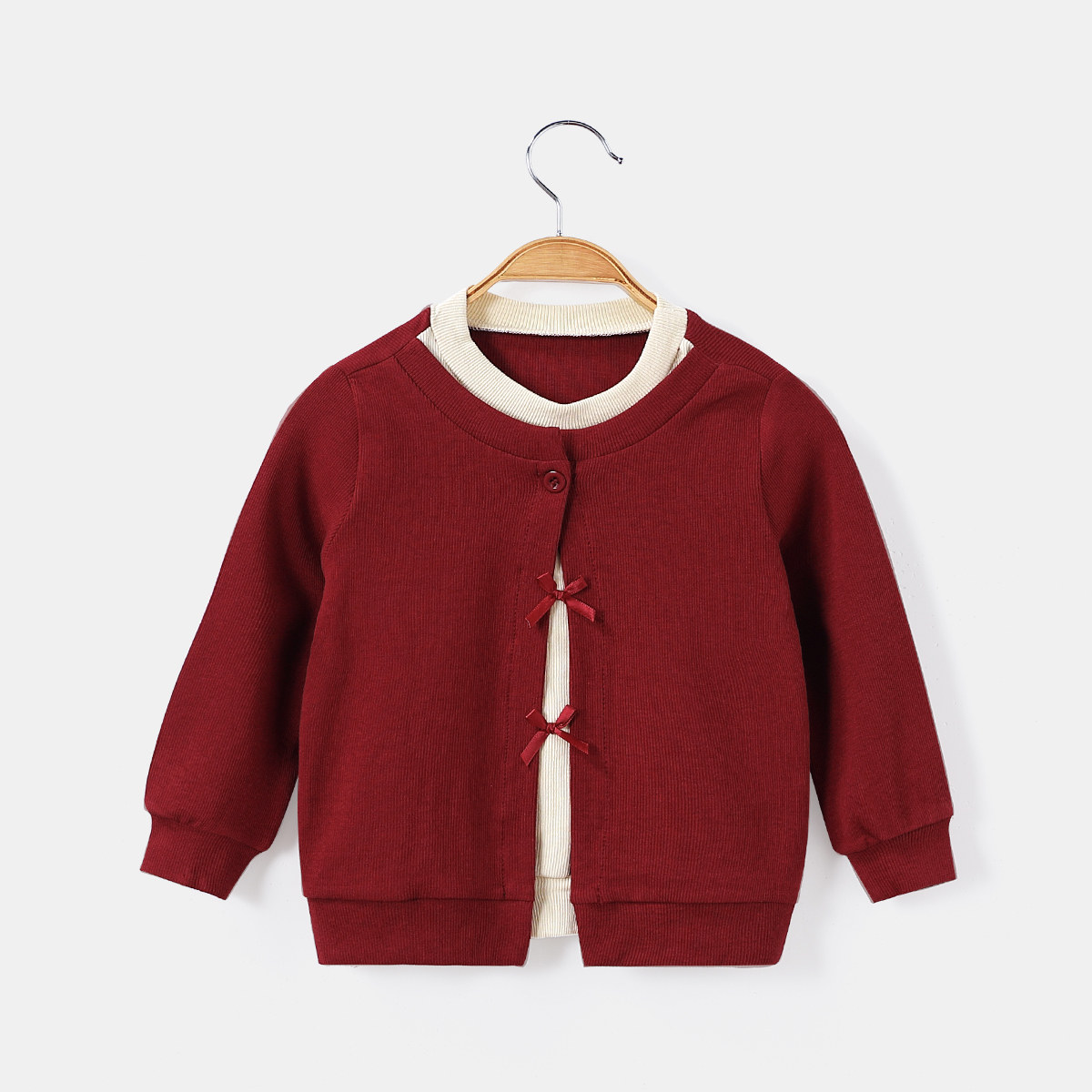 📚 【洋气甜美假两件打底衫】童装女宝宝秋季百搭针织衫小童舒适T恤