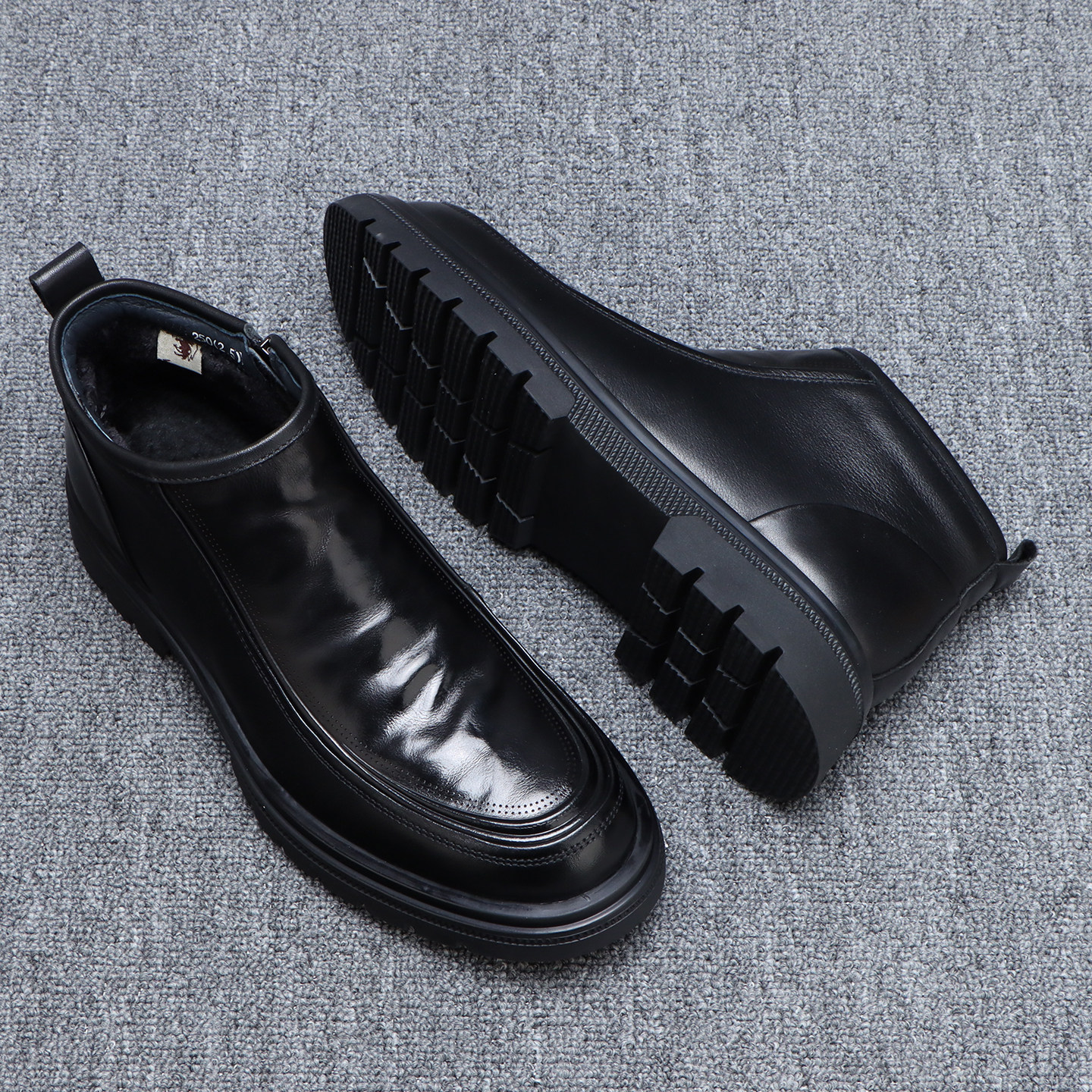 📚 冬季加绒保暖切尔西男靴英伦百搭侧拉链男士高帮皮鞋真皮商务短靴