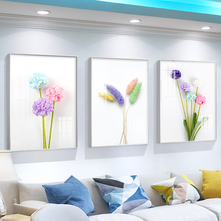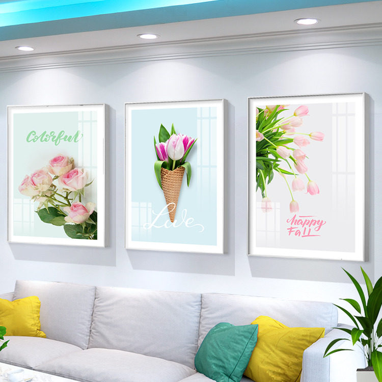 📚 北欧小清新沙发背景墙装饰画客厅高档三联挂画现代简约植物花卉画