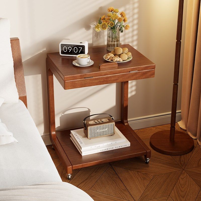 📚 床边桌可移动电脑桌带轮实木床头置物桌倾斜桌沙发边几儿童学习桌