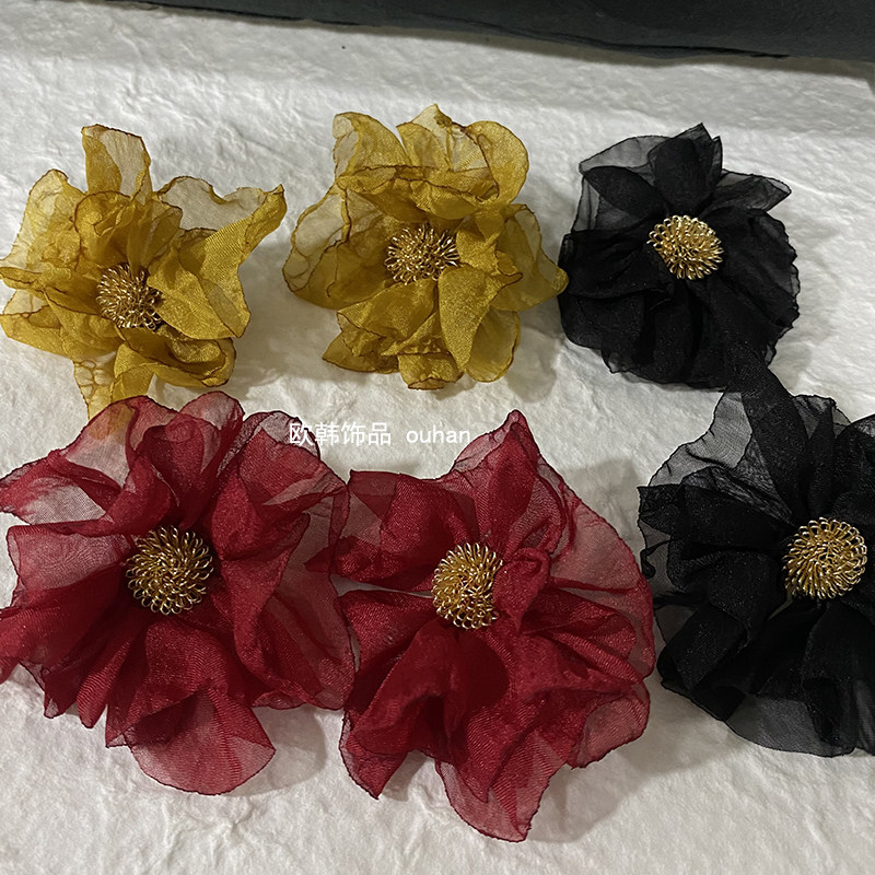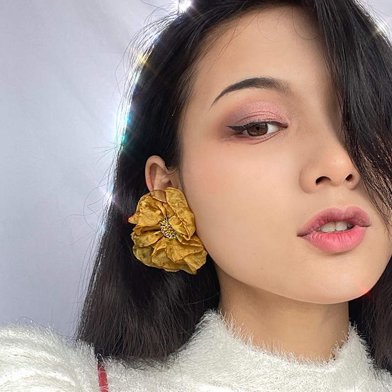📚 手工红色花朵花m花耳环花瓣超仙大气夸张海边渡假仙气耳饰耳