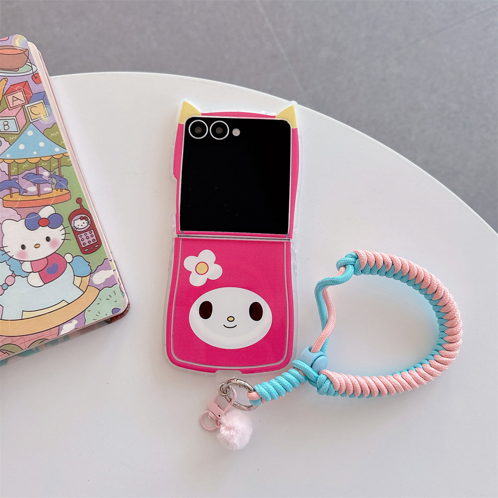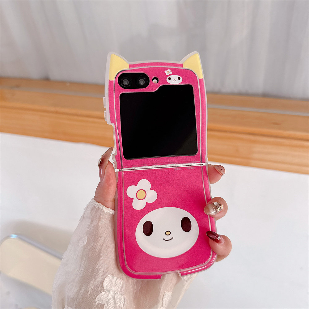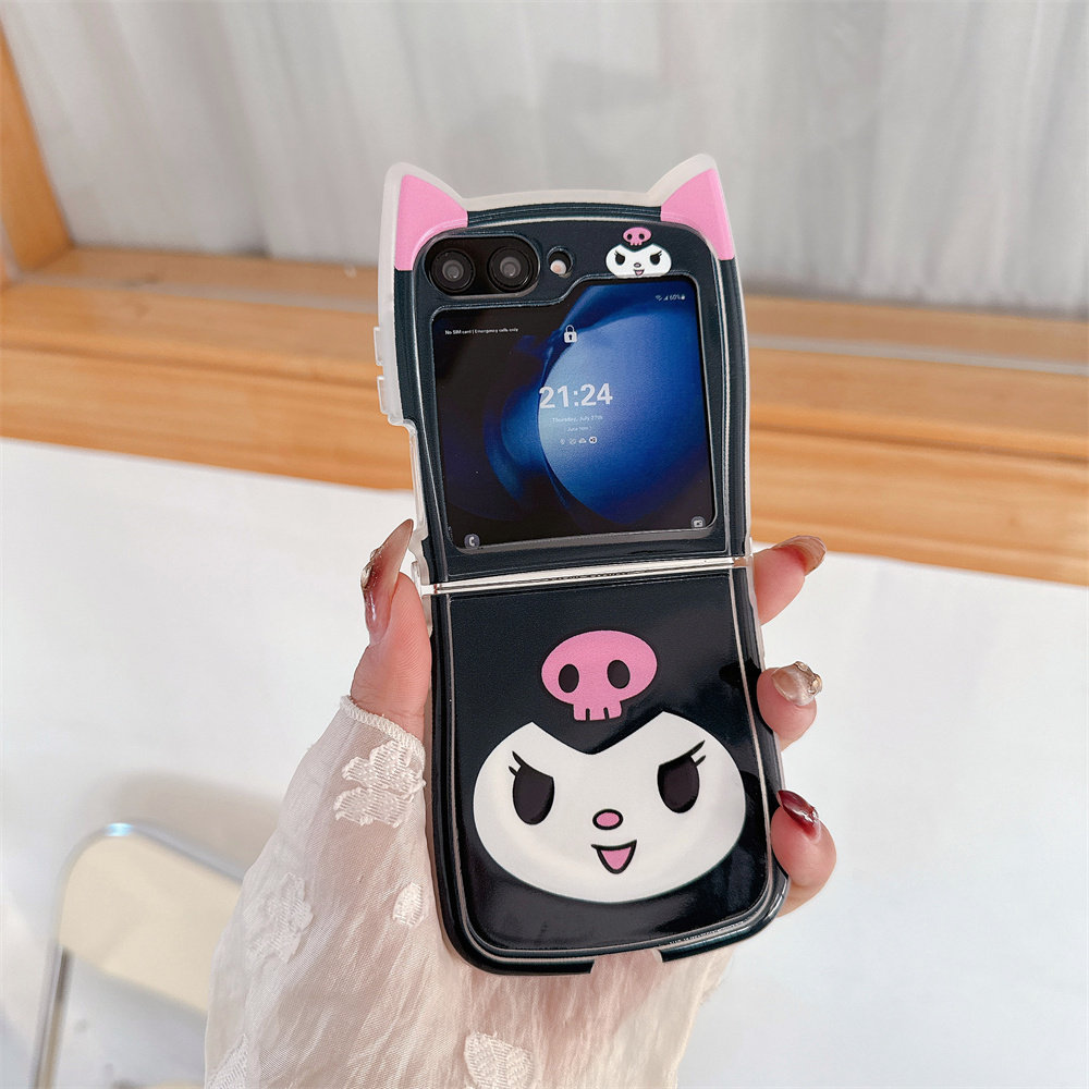 📚 可爱卡通美乐蒂库洛米表情适用三星GalaxyZFlip7/6/5手机壳保护套猫耳朵折叠屏荣耀MagicVFlip软胶OPPON3Flip