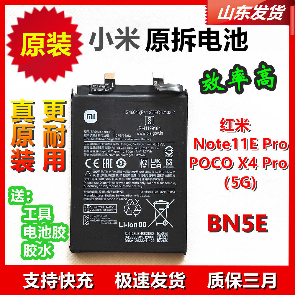 📚 红米原装电池Note11E Pro小米POCO X4 Pro 5G原机电池BN5E 适用