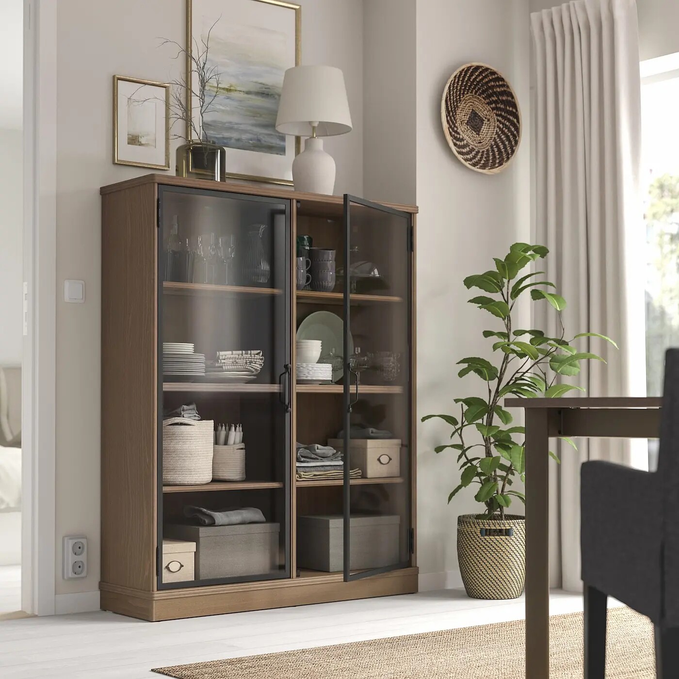 📚 IKEA宜家 兰恩颂德 玻璃门柜灰褐色121x37x152 厘米收纳柜抽屉柜